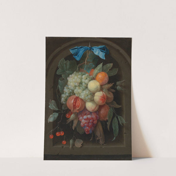 Still Life Of Grapes, Peaches, A Pomegranate And Other Fruit Hanging From A Nail Before A Stone Niche by Joris van Son - Wall Art Print