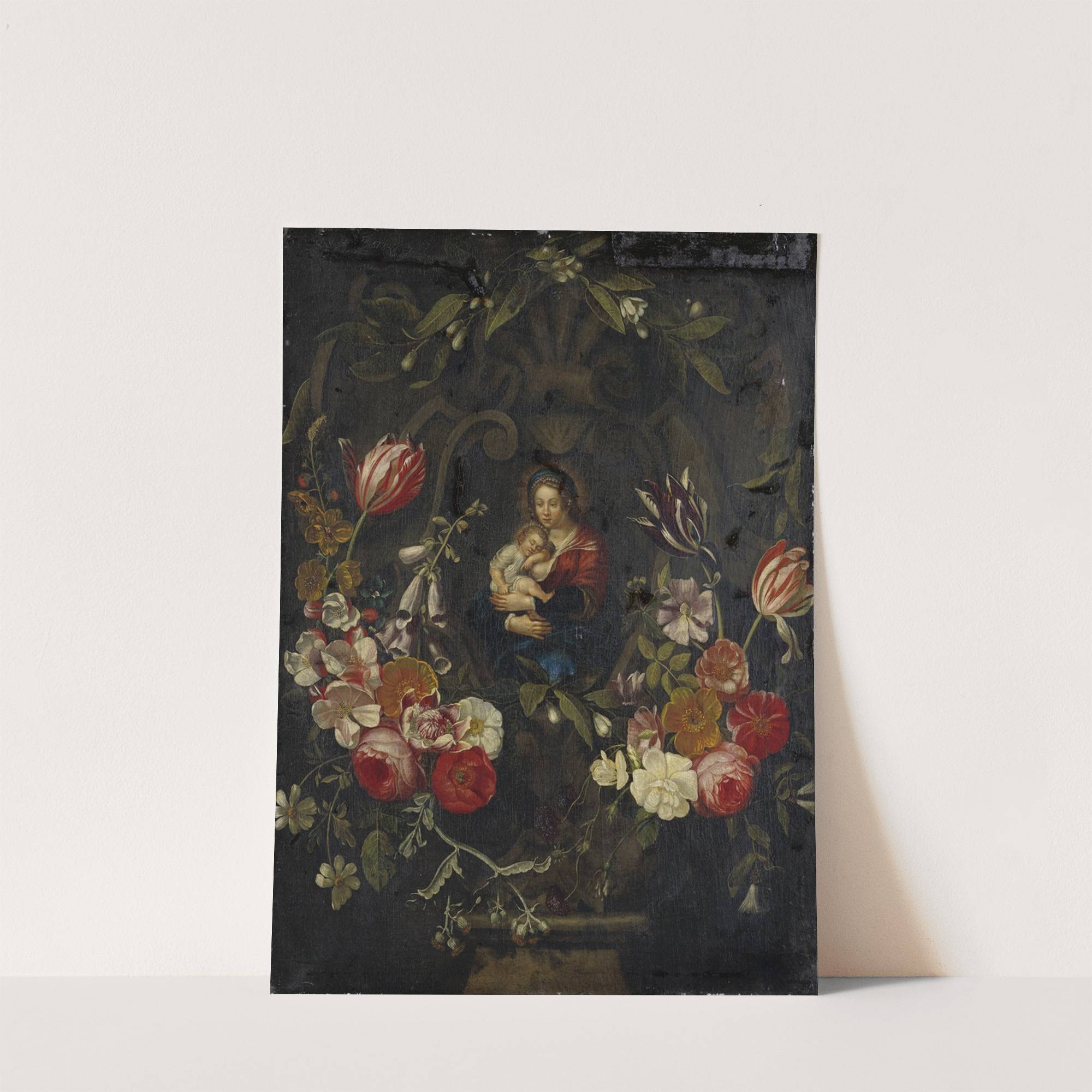 Still Life With Flower Cartouche Encircling A Madonna With Child by David Hartmann - Wall Art Print