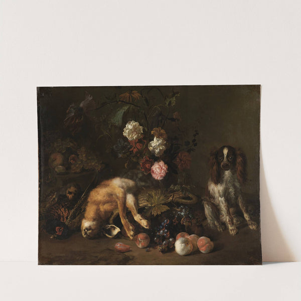 Still life with hunted game, flowers, fruit and a spaniel by Nicolas de Largillière - Wall Art Print