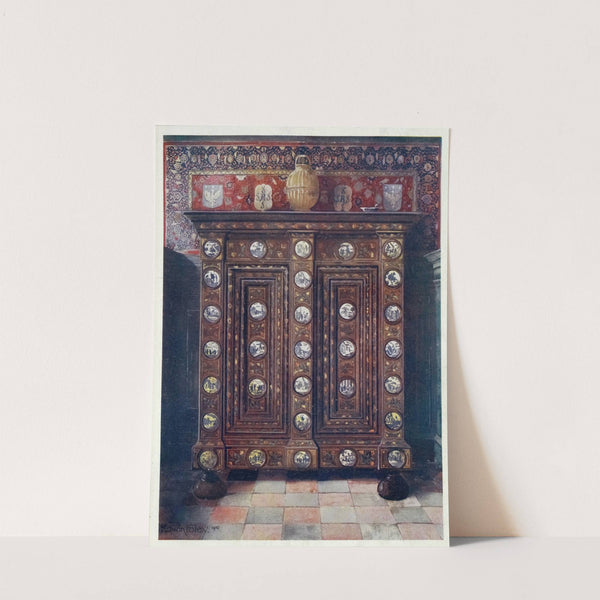 Walnut kas inlaid and with painted medallions of Delft ware by Edwin Foley - Wall Art Print