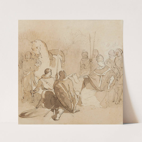 évèque signant un documentque lui présentent des militaires by Prosper Lafaye - Wall Art Print