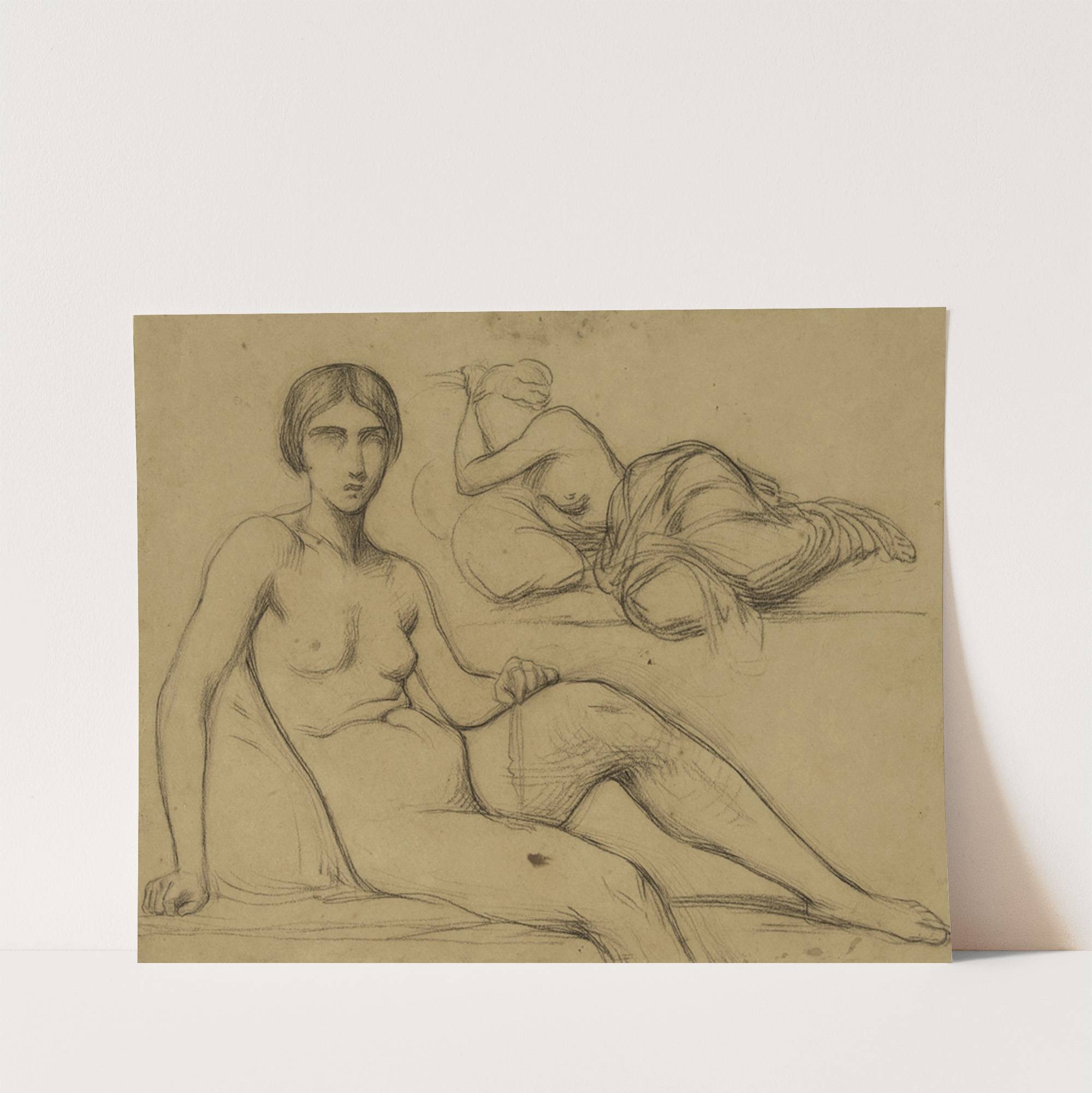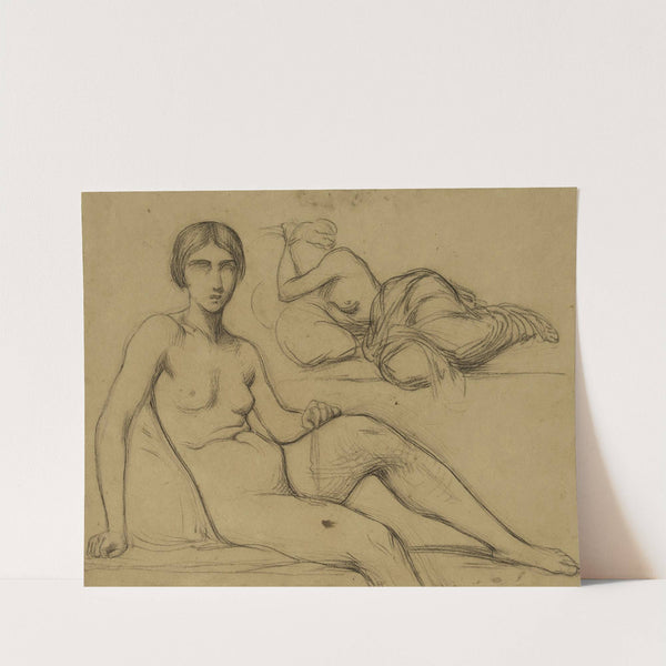 Femme nue assise et femme demie-nue couchée by Jean-Achille Benouville - Wall Art Print