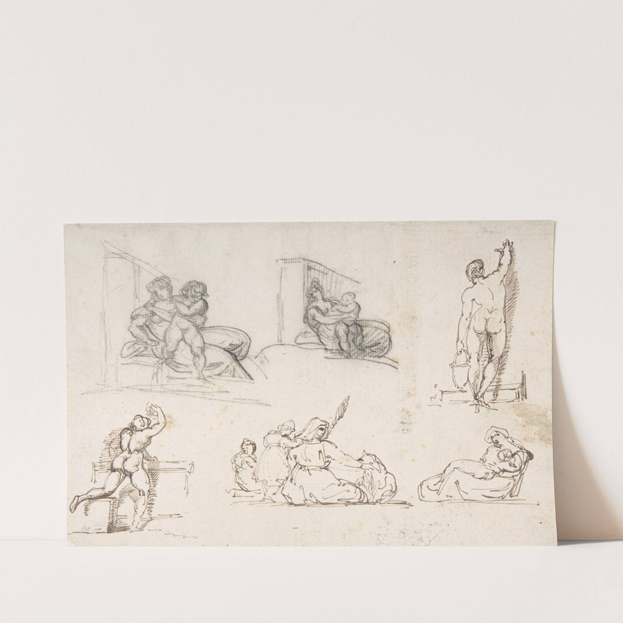 Six Figure Studies, including four for The Poor Italian Family by Théodore Géricault - Wall Art Print