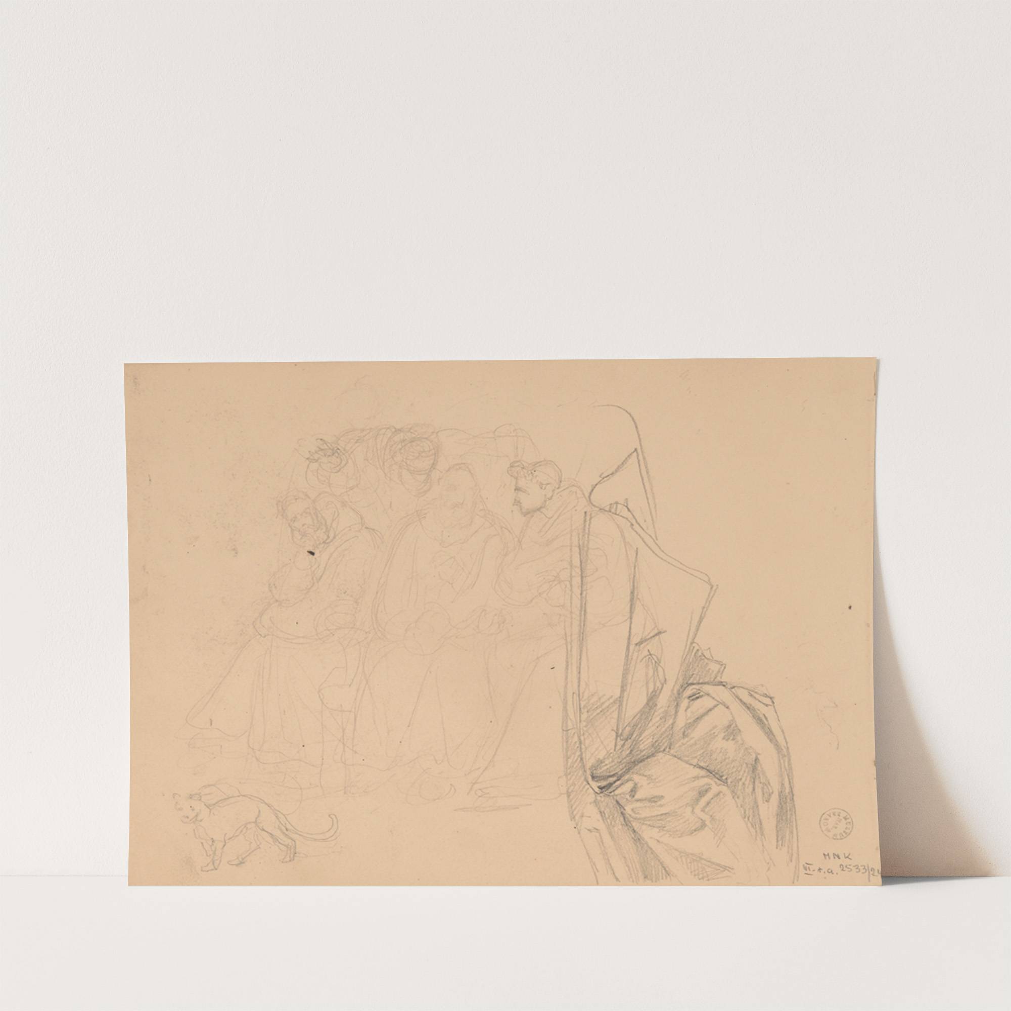 Sketch of three monks sitting side by side by Józef Simmler - Wall Art Print
