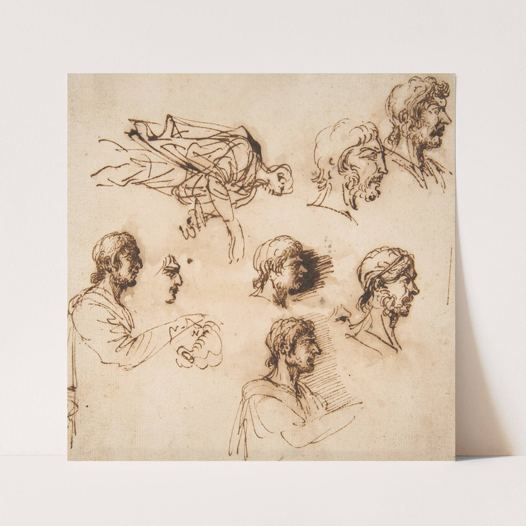 Studies of a Man’s Head in Profile, and of a Standing Male Figure by Salvator Rosa - Wall Art Print