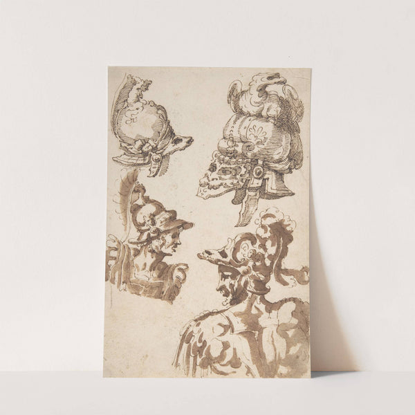 Studies of Two Helmets and of Two Soldiers Wearing Helmets by Marco Marchetti - Wall Art Print