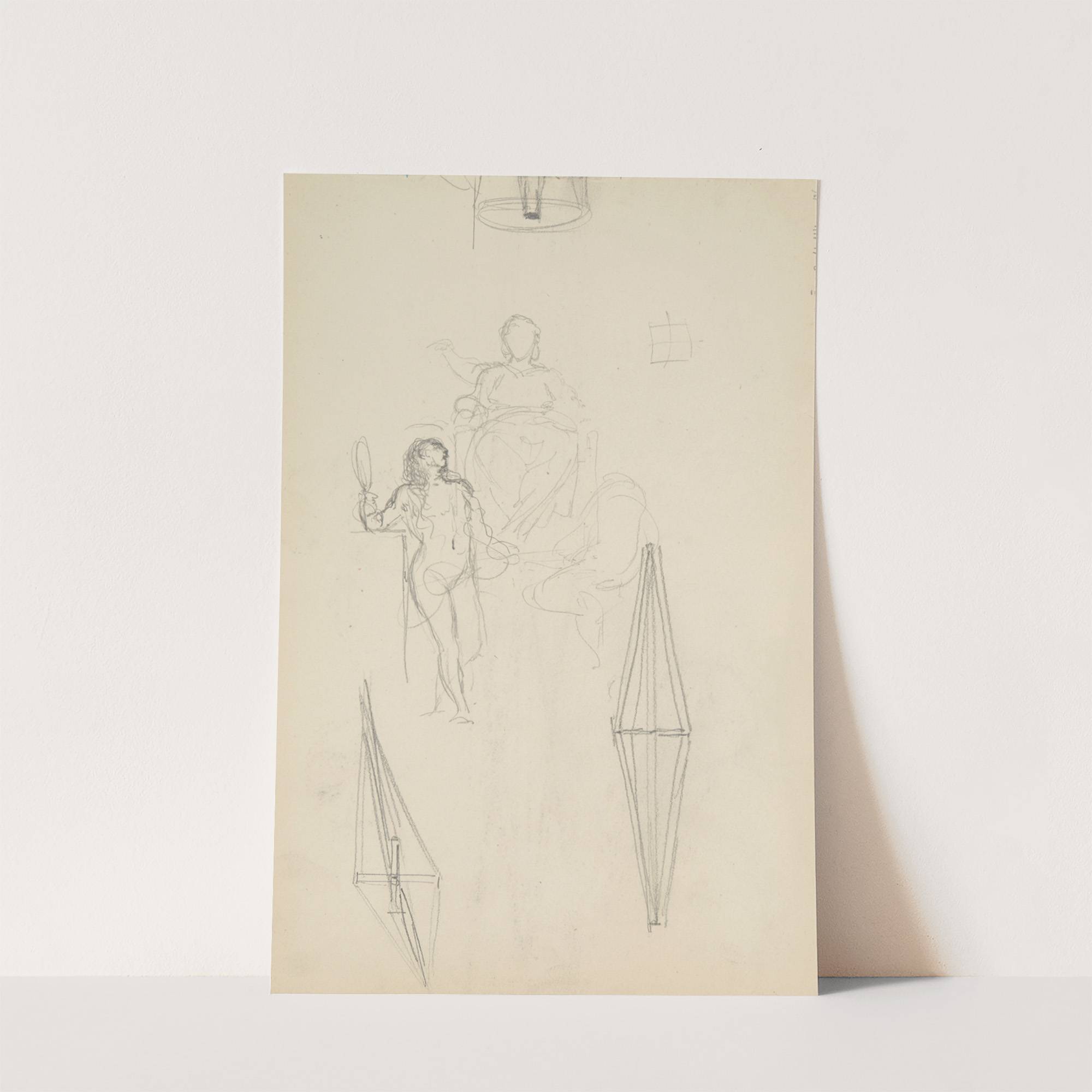 szkic postaci kobiecej stojącej przed postacią siedzącą, rysunki przekroju drewnianego walca by Henryk Siemiradzki - Wall Art Print