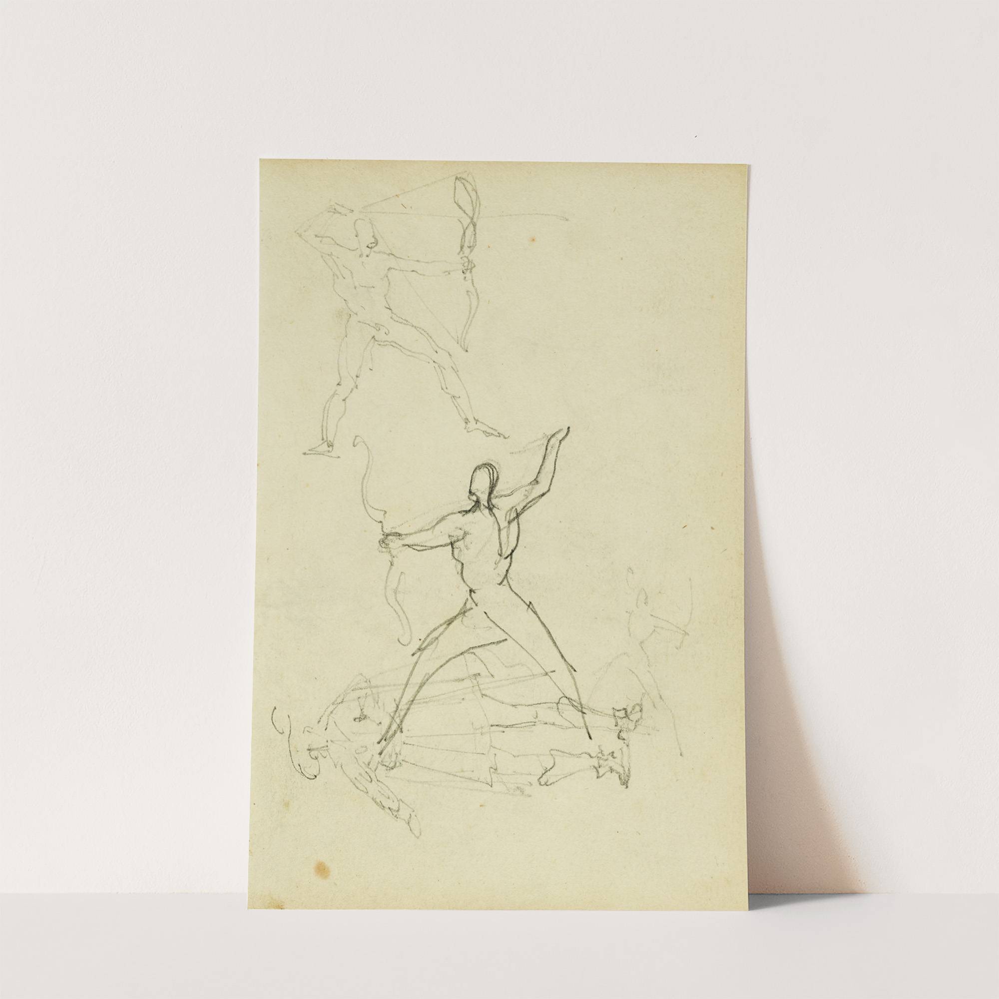 Three studies of a nude man with bow and arrow, standing cavalier by Théodore Géricault - Wall Art Print