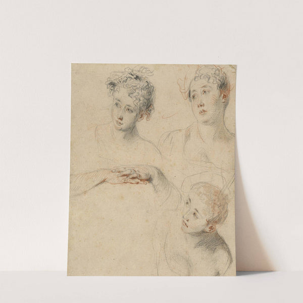 Three Studies of a Woman’s Head and a Study of Hands (recto) by Jean-Antoine Watteau - Wall Art Print