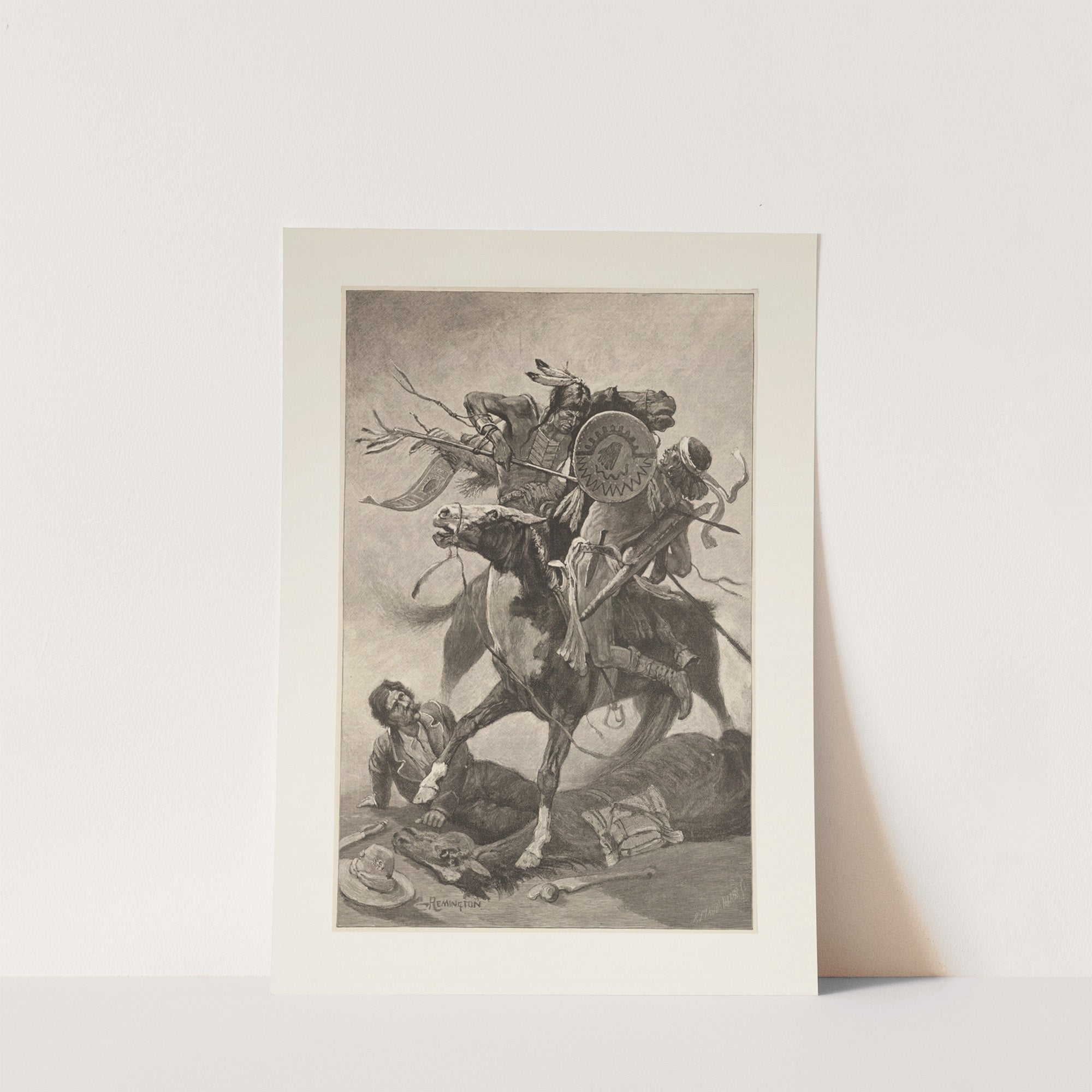 Thrust his lance through his body and rode him down (1889) by Frederic Remington - Wall Art Print