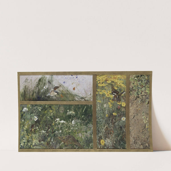 Four Bird Studies, Red-Backed Shrike, Corncrake, Chaffinches, Willow Warbler by Bruno Liljefors - Wall Art Print
