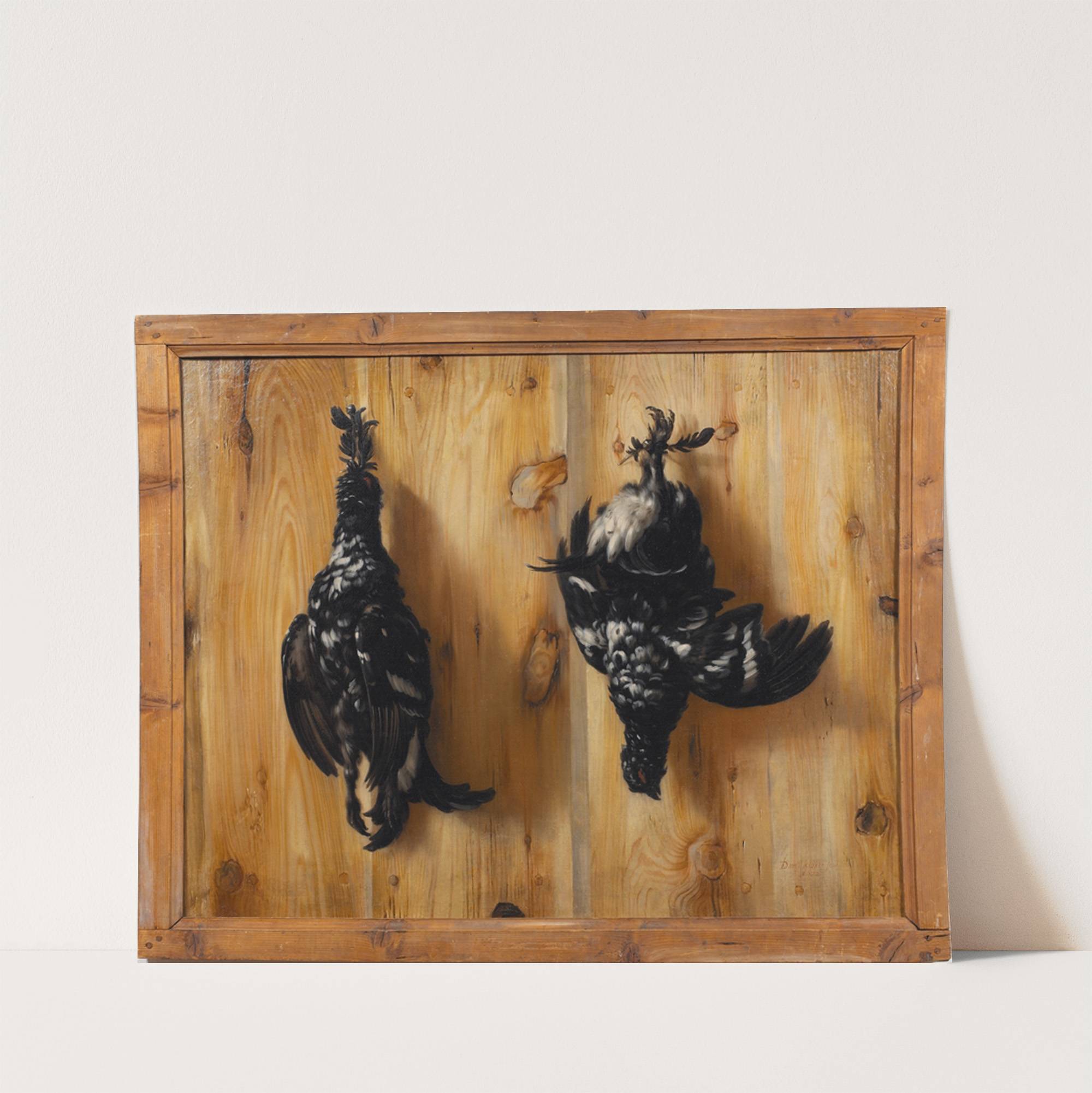 Stilleben med två orrtuppar mot en brädvägg by David Klöcker Ehrenstrahl - Wall Art Print