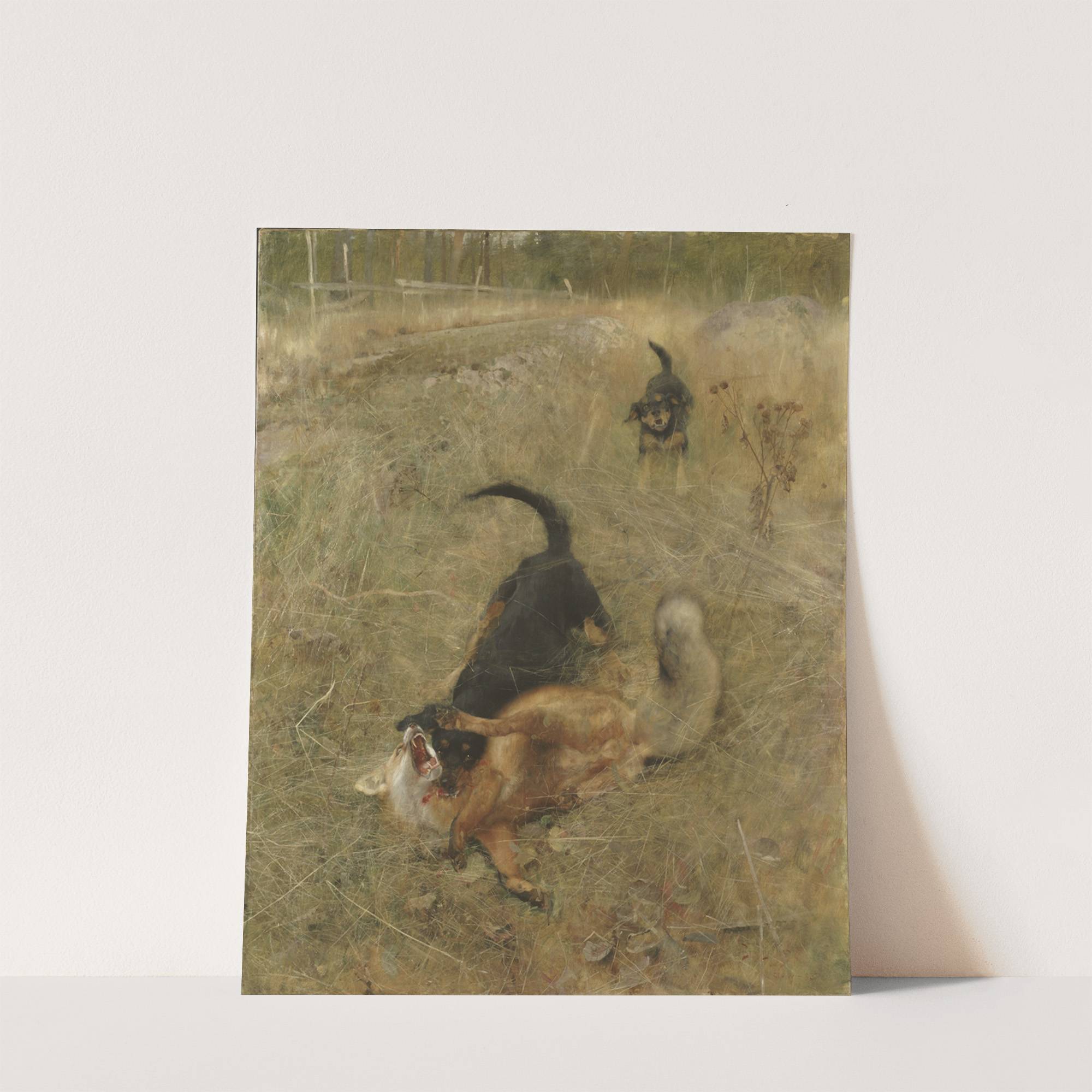 Swedish Foxhound and Fox by Bruno Liljefors - Wall Art Print