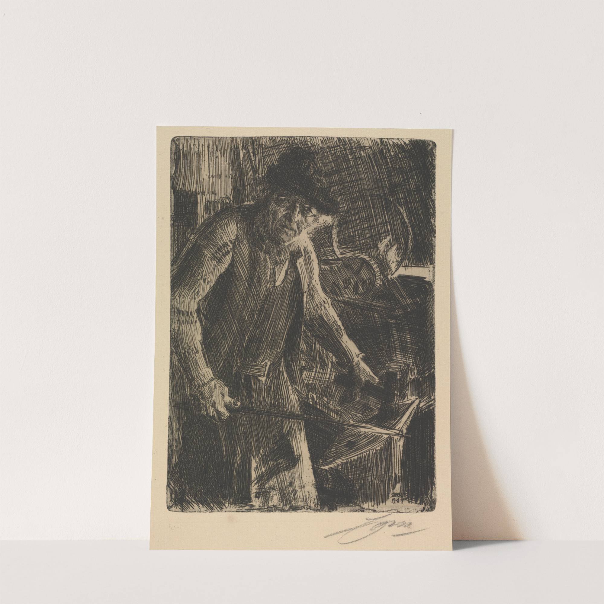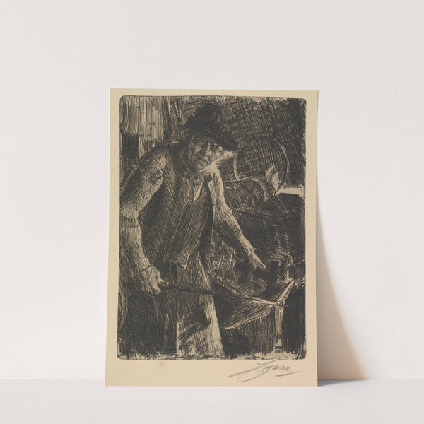 This stunning artwork, "The Master-Smith" by Anders Zorn, presents a powerful depiction of a master blacksmith at work. Rendered in an intricate, dark-ink etching style, the piece captures the intense focus and physicality involved in the craft. The blacksmith is...