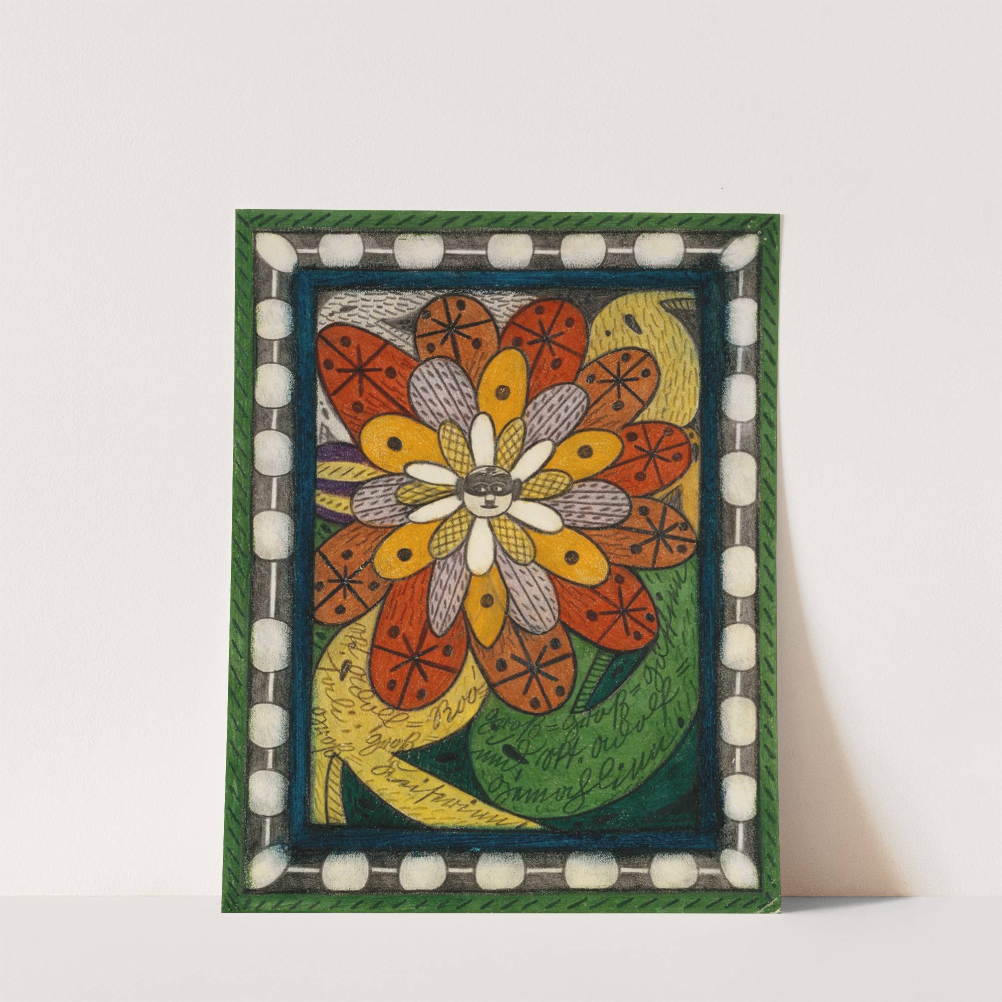 This vibrant art print features "Skt. Adolf=Roosali" by Adolf Wölfli, showcasing his unique and expressive style. The central subject is an abstract flower with a broad, colorful palette. Dominating the composition are large petals in alternating shades of orange, red,...