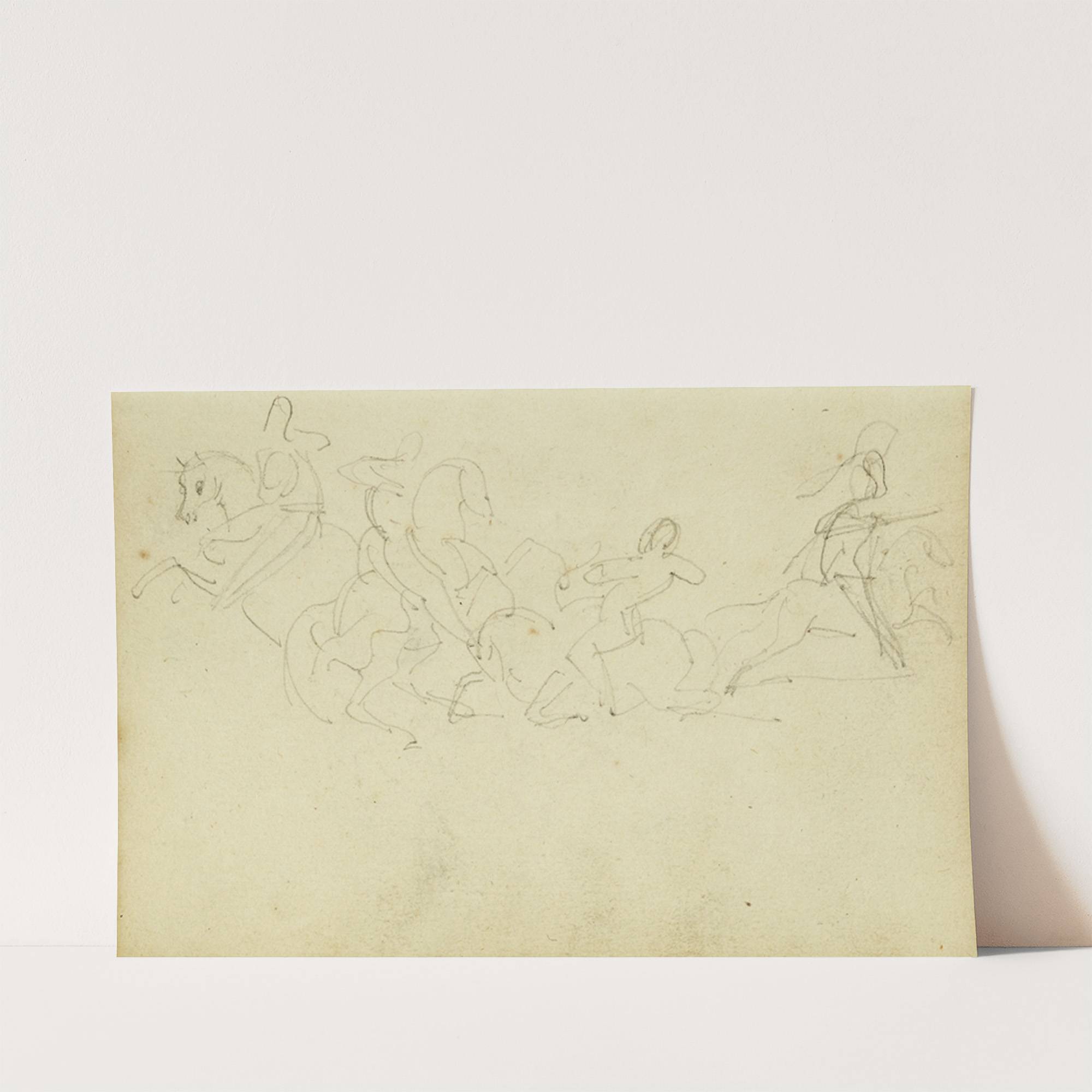 Cavalry skirmish with four horsemen by Théodore Géricault - Wall Art Print