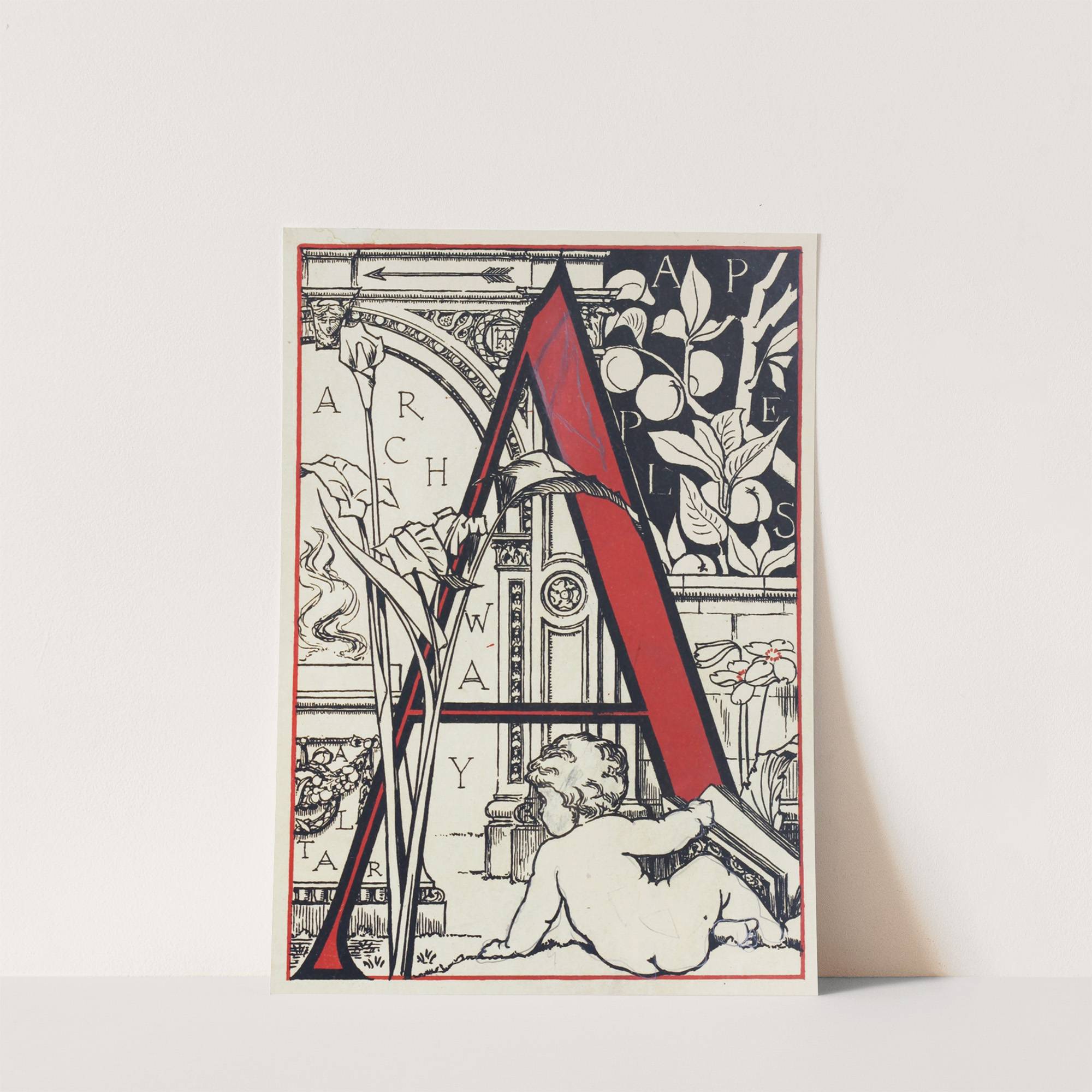 Introduce yourself to the captivating "ABC Pl.01" by renowned artist Theodore Howard. This striking print combines intricate line work with bold color elements in a modern Art Deco style. The composition is dominated by a large, red, diagonally-placed letter 'A'...