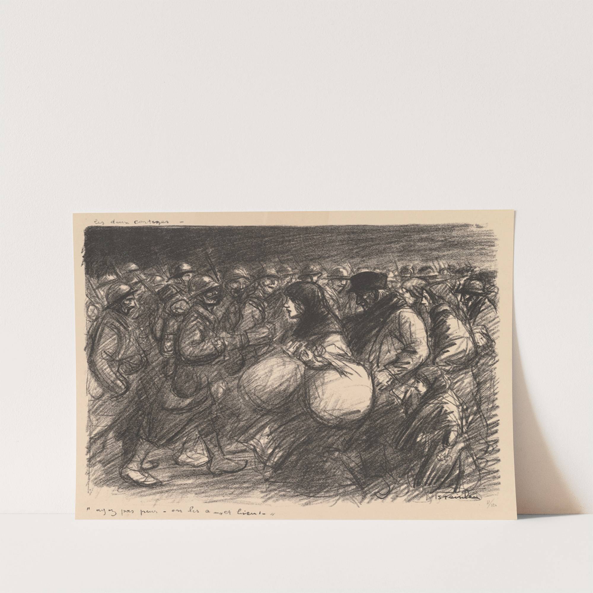 War Sketches; The Two Processions (Croquis de guerre; Les deux cortèges – ‘Ayez pas peur – on les a – et bien!’) (1916) by Théophile Alexandre Steinlen - Wall Art Print