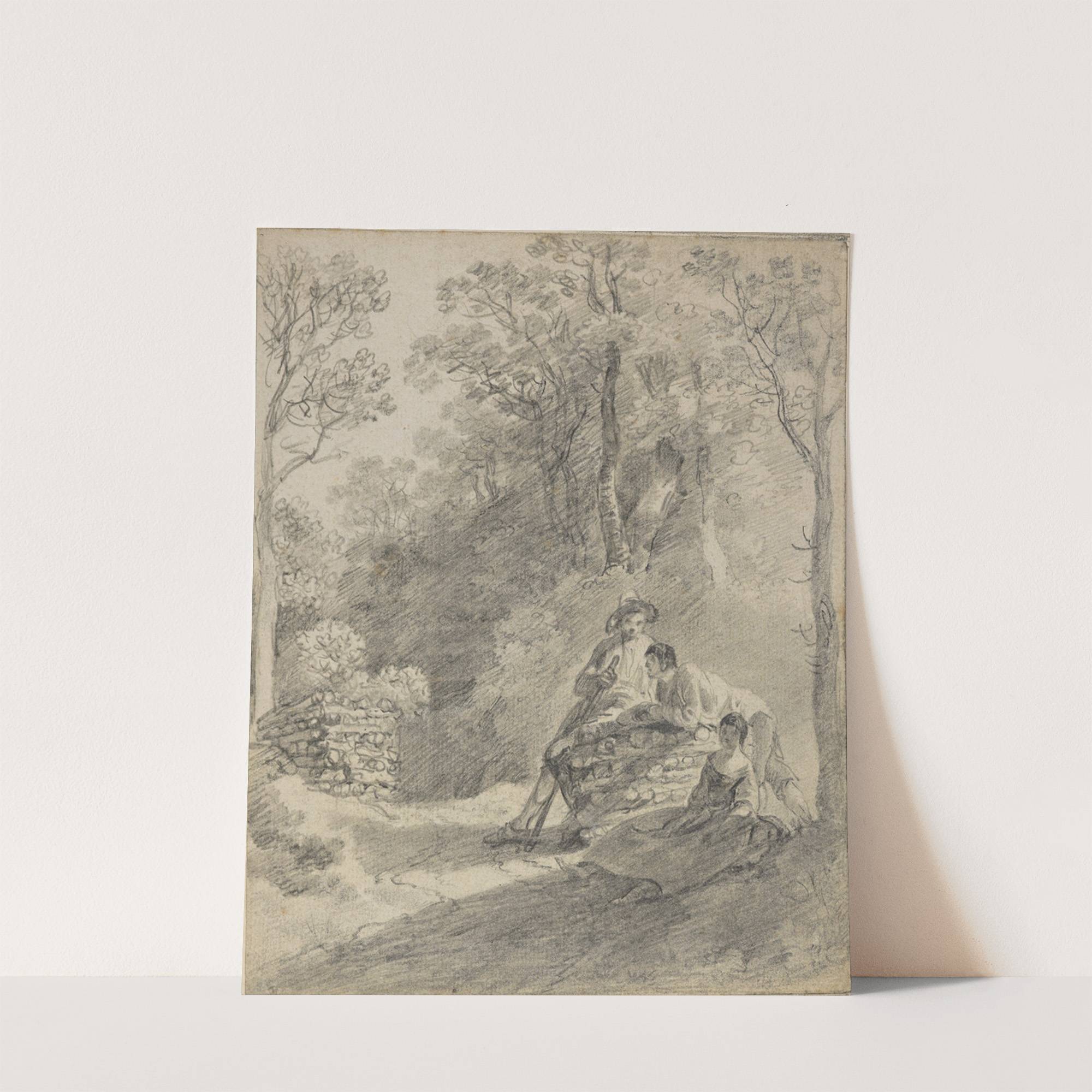 Wooded landscape with figures by Thomas Gainsborough - Wall Art Print
