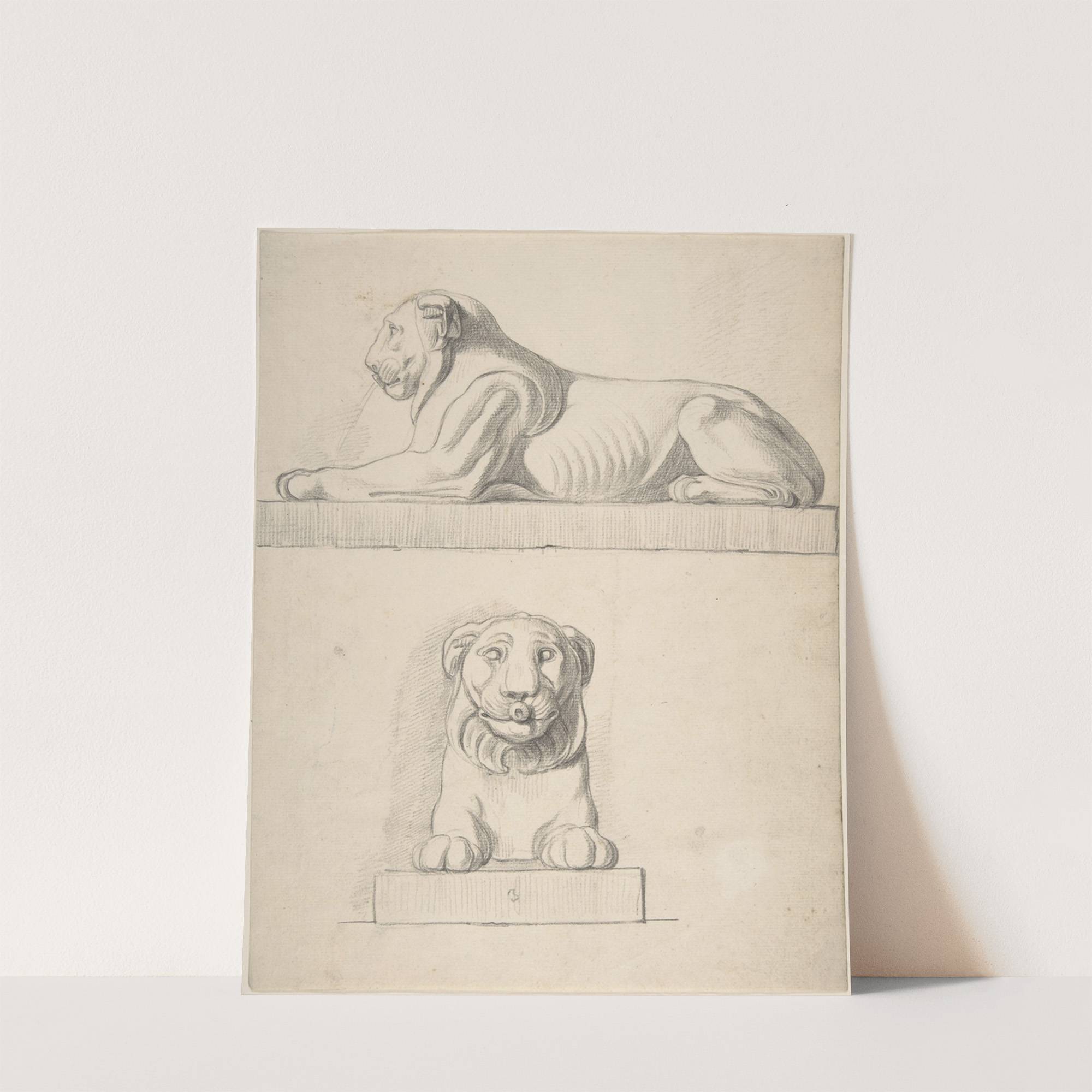 Classical Sculpture of a Lion, Front and Side Views by Thomas Hardwick - Wall Art Print
