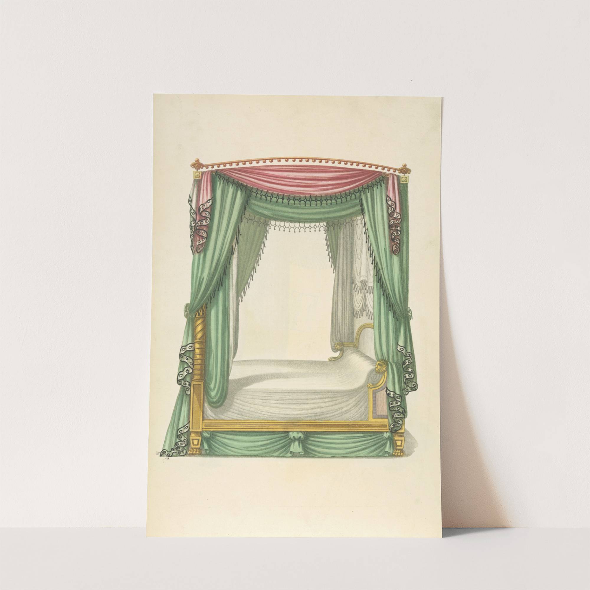 Canopy bed with pink and green drapery. by Thomas Sheraton - Wall Art Print