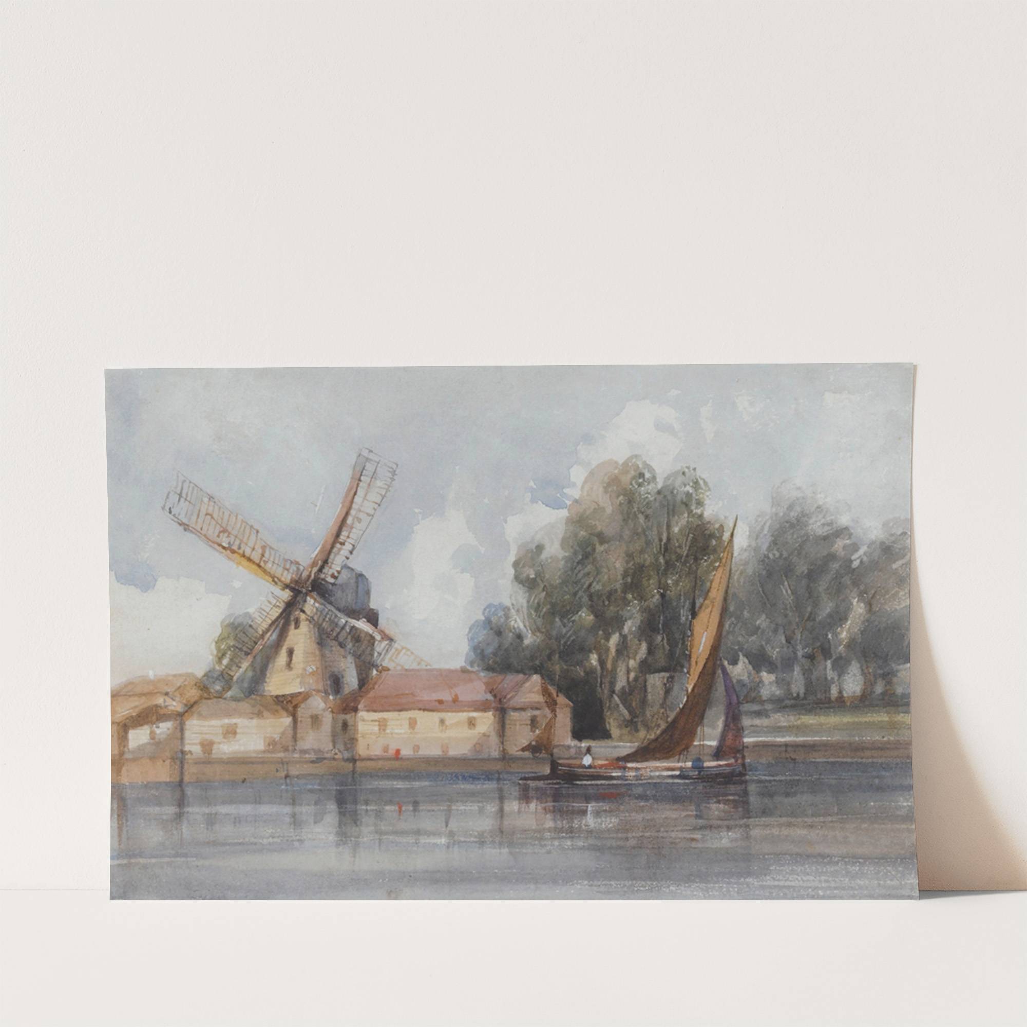 A Wherry Passing A Windmill And Farm Buildings by Thomas Shotter Boys - Wall Art Print
