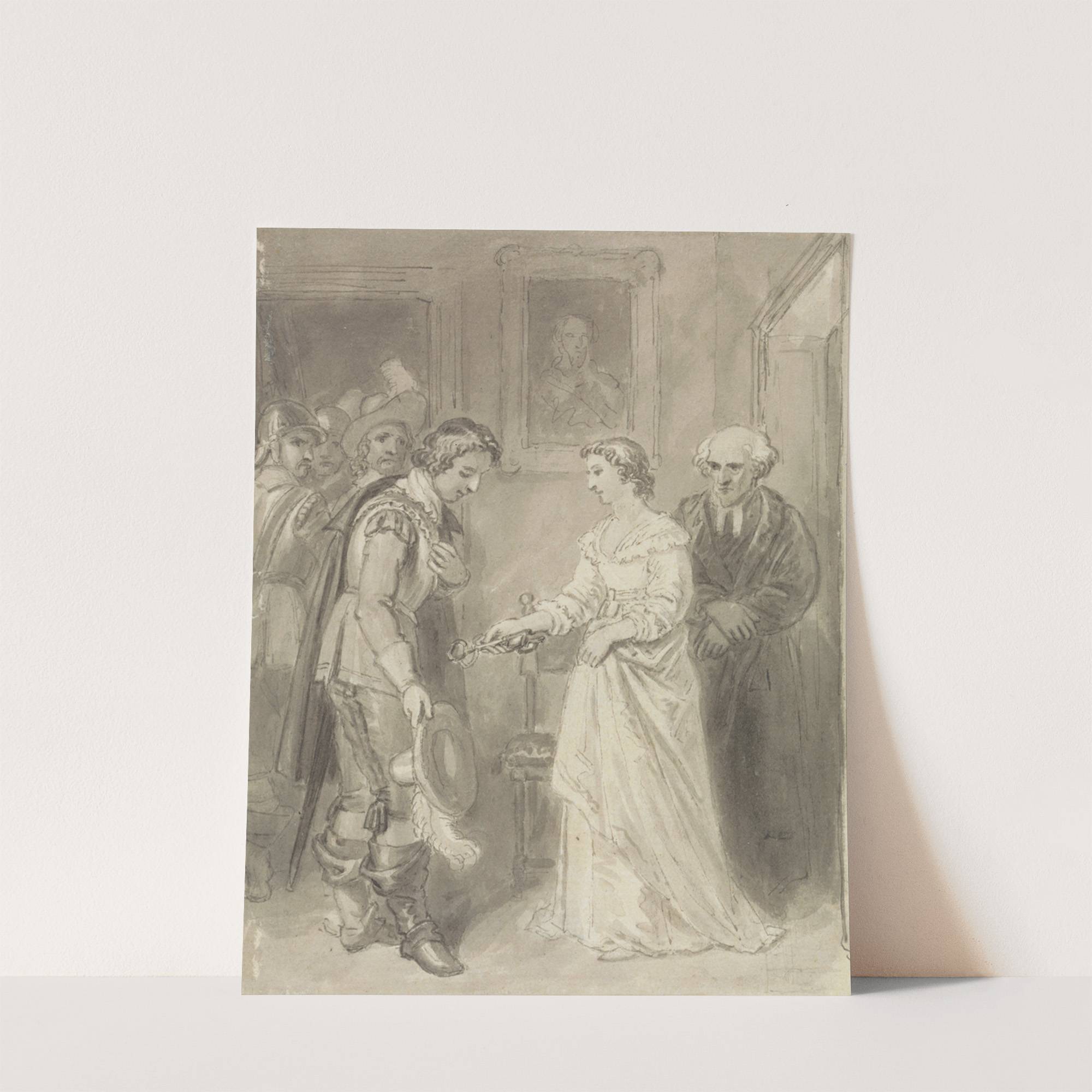 A Girl Giving a Key to a Cavalier by Thomas Stothard - Wall Art Print
