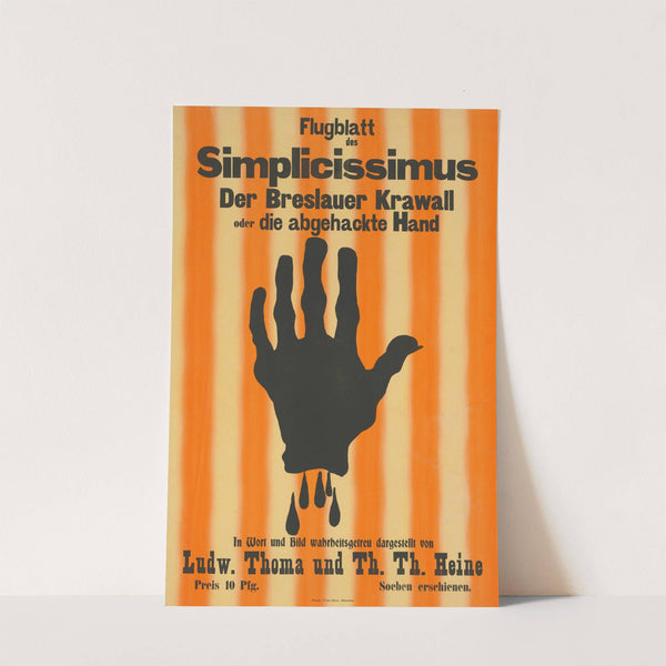 Flugblatt des Simplicissimus. Der Breslauer Krawall oder die abgehackte Hand (1907) by Thomas Theodor Heine - Wall Art Print