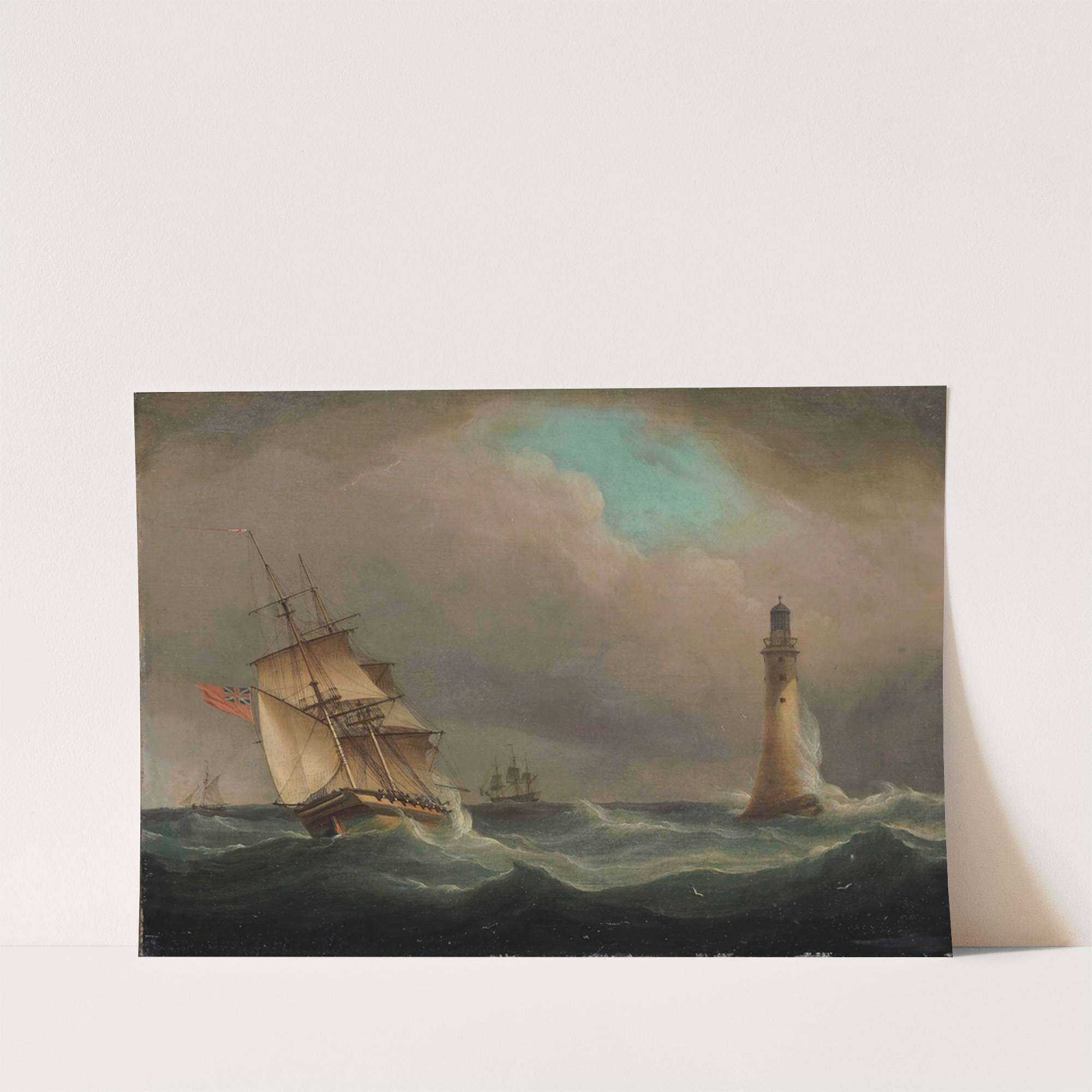 A Frigate Healing In The Breeze Off The Eddystone Lighthouse by Thomas Whitcombe - Wall Art Print