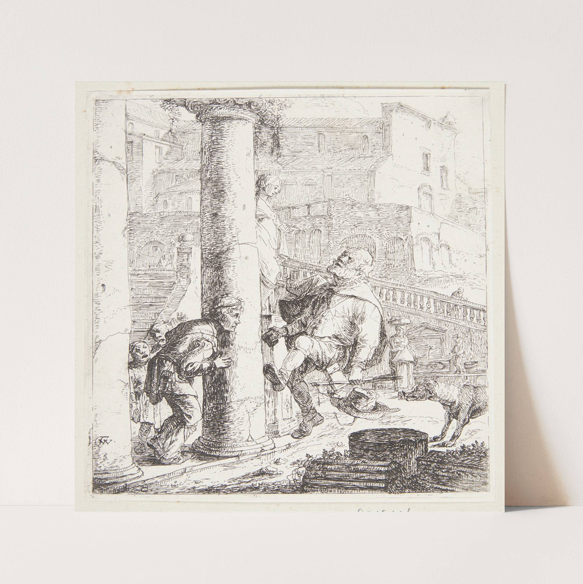 Blind tigger, som støder ind i en søjle by Thomas Wijck - Wall Art Print