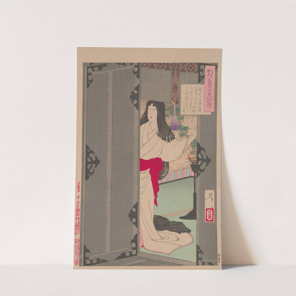 Akazome Emon viewing the Moon from her palace chambers by Tsukioka Yoshitoshi - Wall Art Print