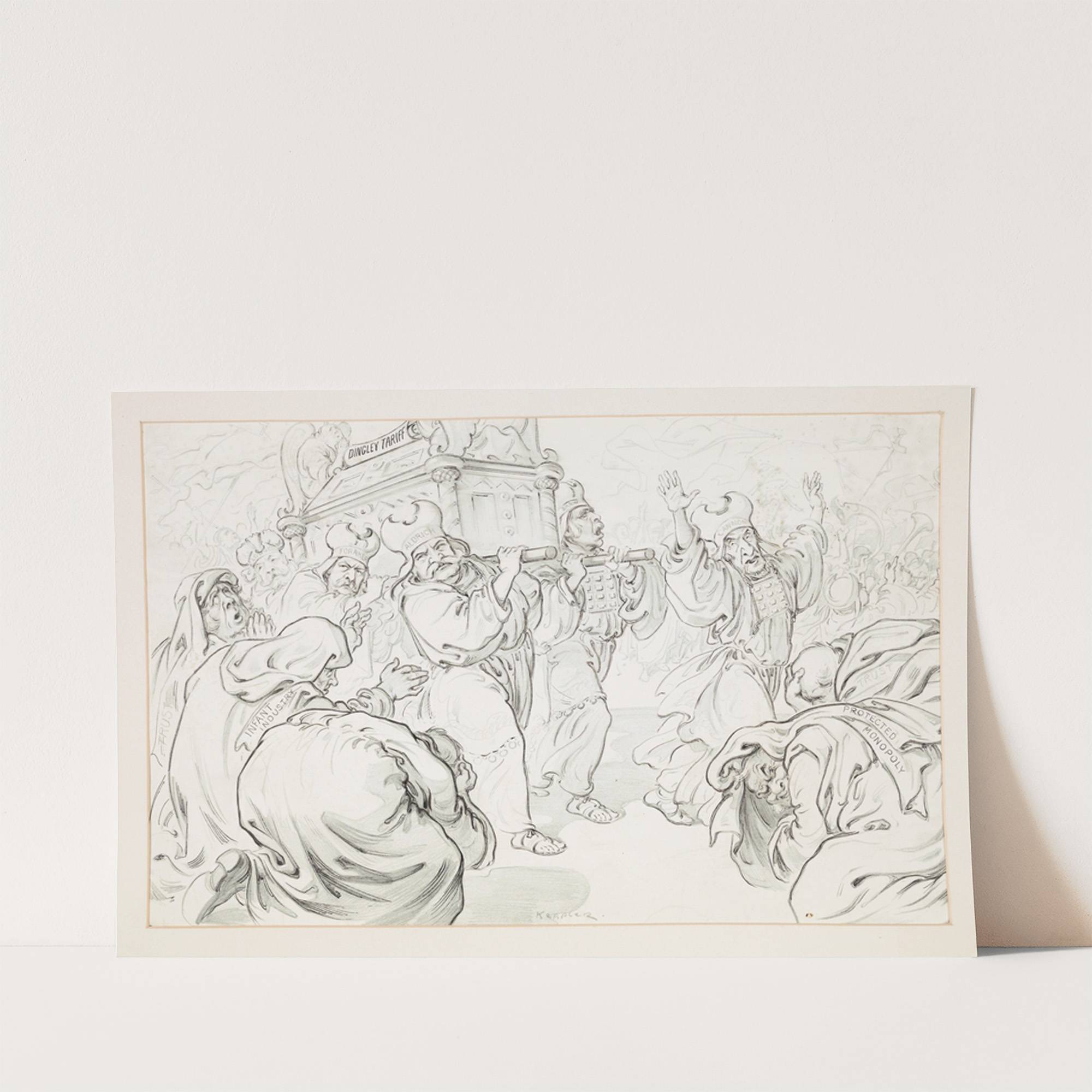 Triumphal procession in which figures labeled Lodge, Foraker, Aldrich, and Shaw bear a container labeled ‘Dingley Tariff’ (1906) by Udo Keppler - Wall Art Print