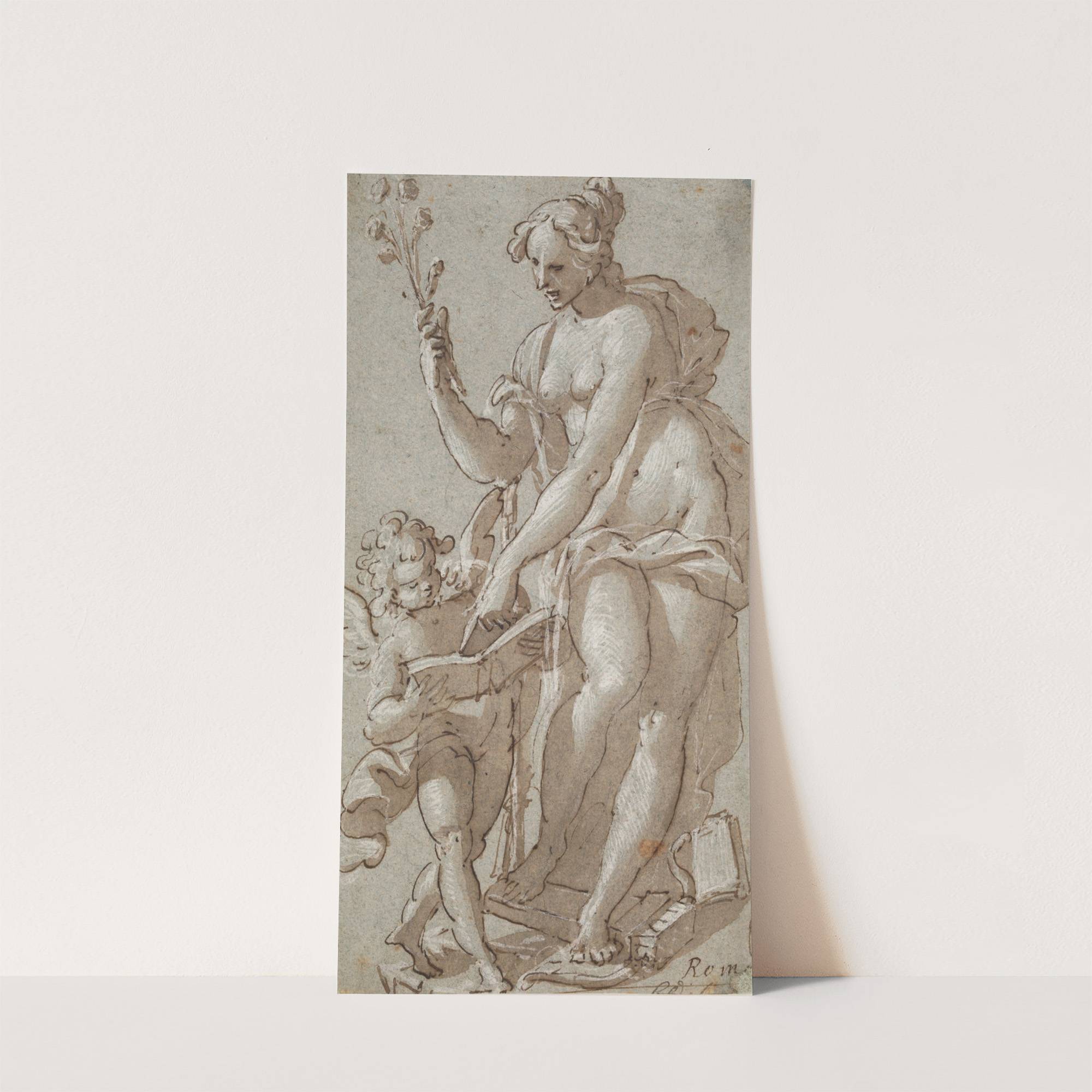 Venus underviser Amor, der læser i en bog by Giovanni Battista Rovere - Wall Art Print