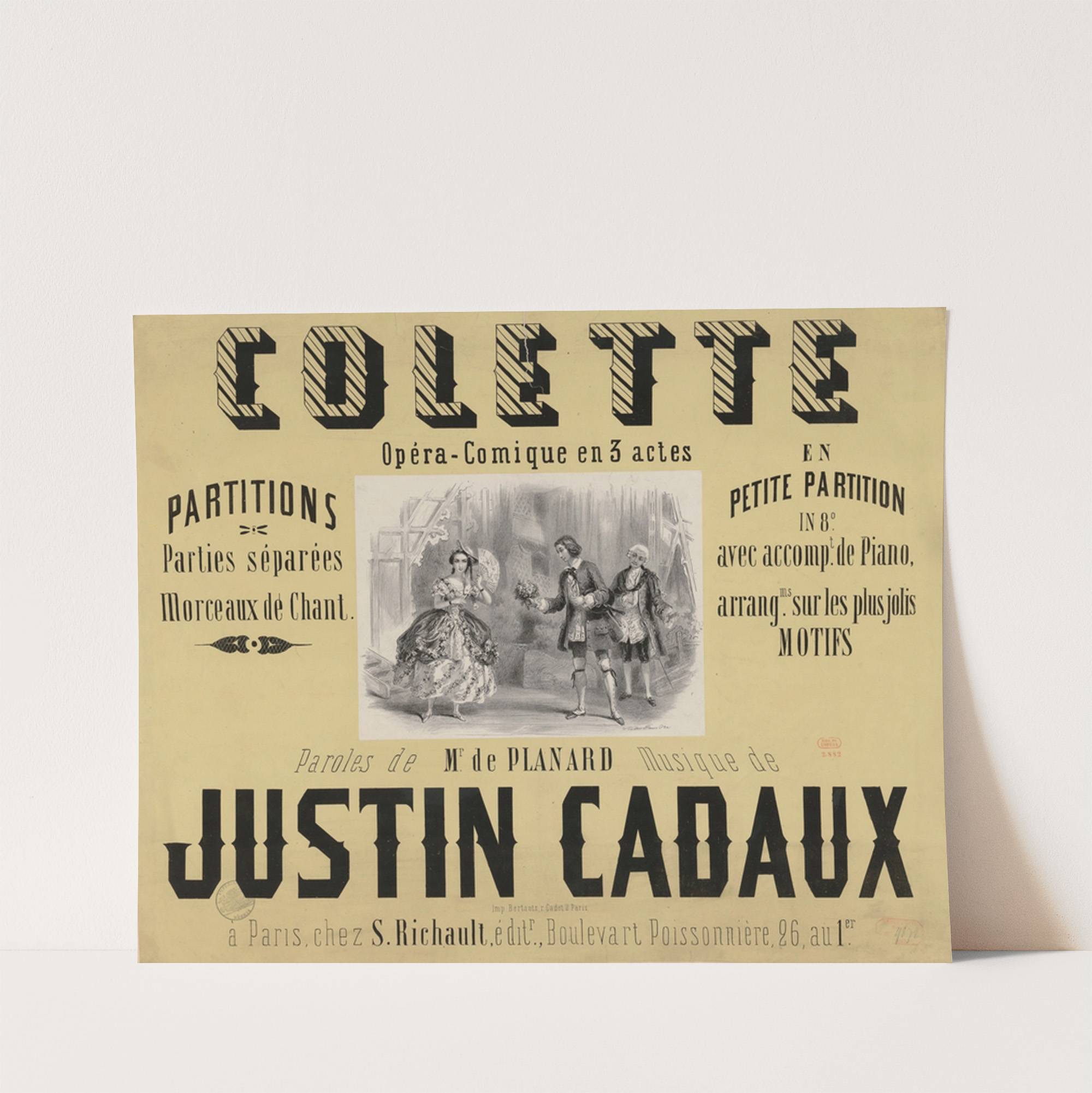 Colette. Opéra-comique en 3 actes… Paroles de Mr de Planard. Musique de J. cadaux (1853) by Victor Coindre - Wall Art Print