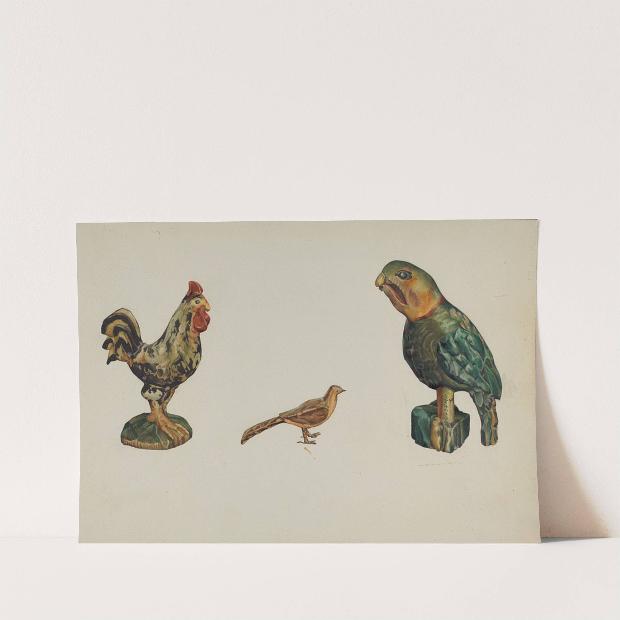 Wooden Rooster, Pheasant, and Parrot by Victor F. Muollo - Wall Art Print