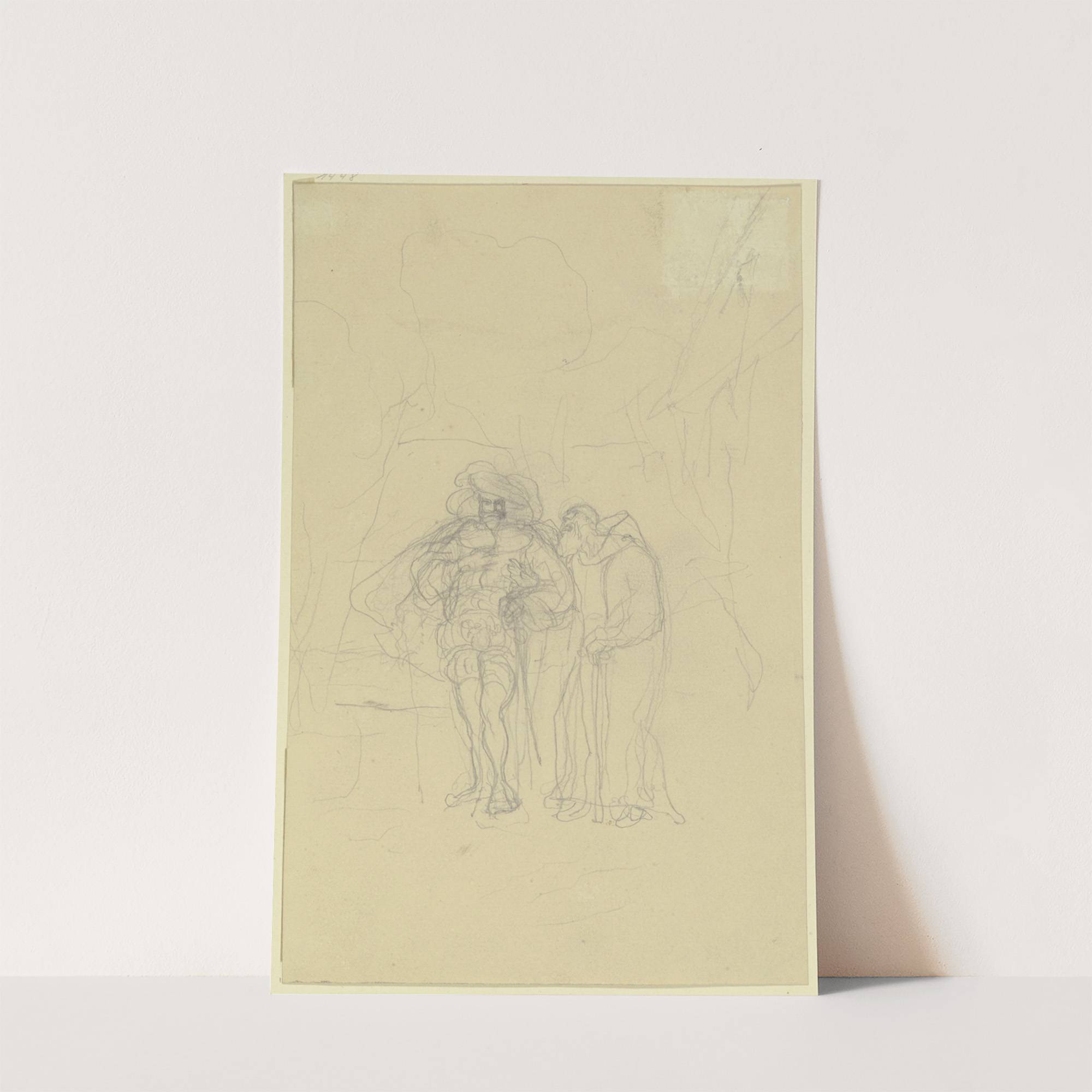 Alter Mönch und ein Ritter in historischer Tracht by Victor Müller - Wall Art Print