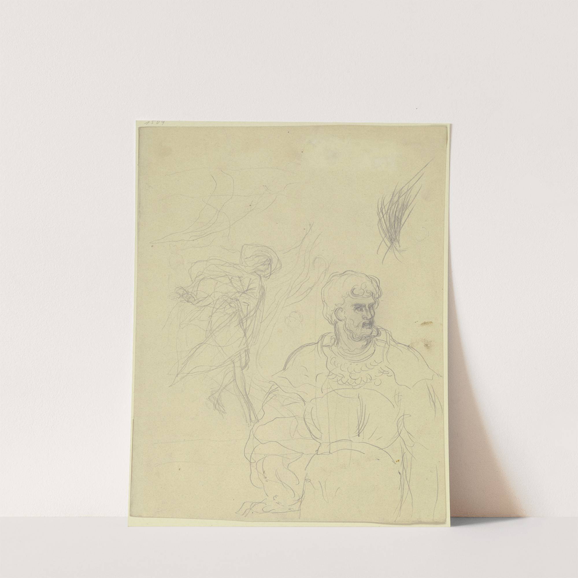 Bärtiger Mann in historischerTracht, links eine schreitende junge Frau by Victor Müller - Wall Art Print