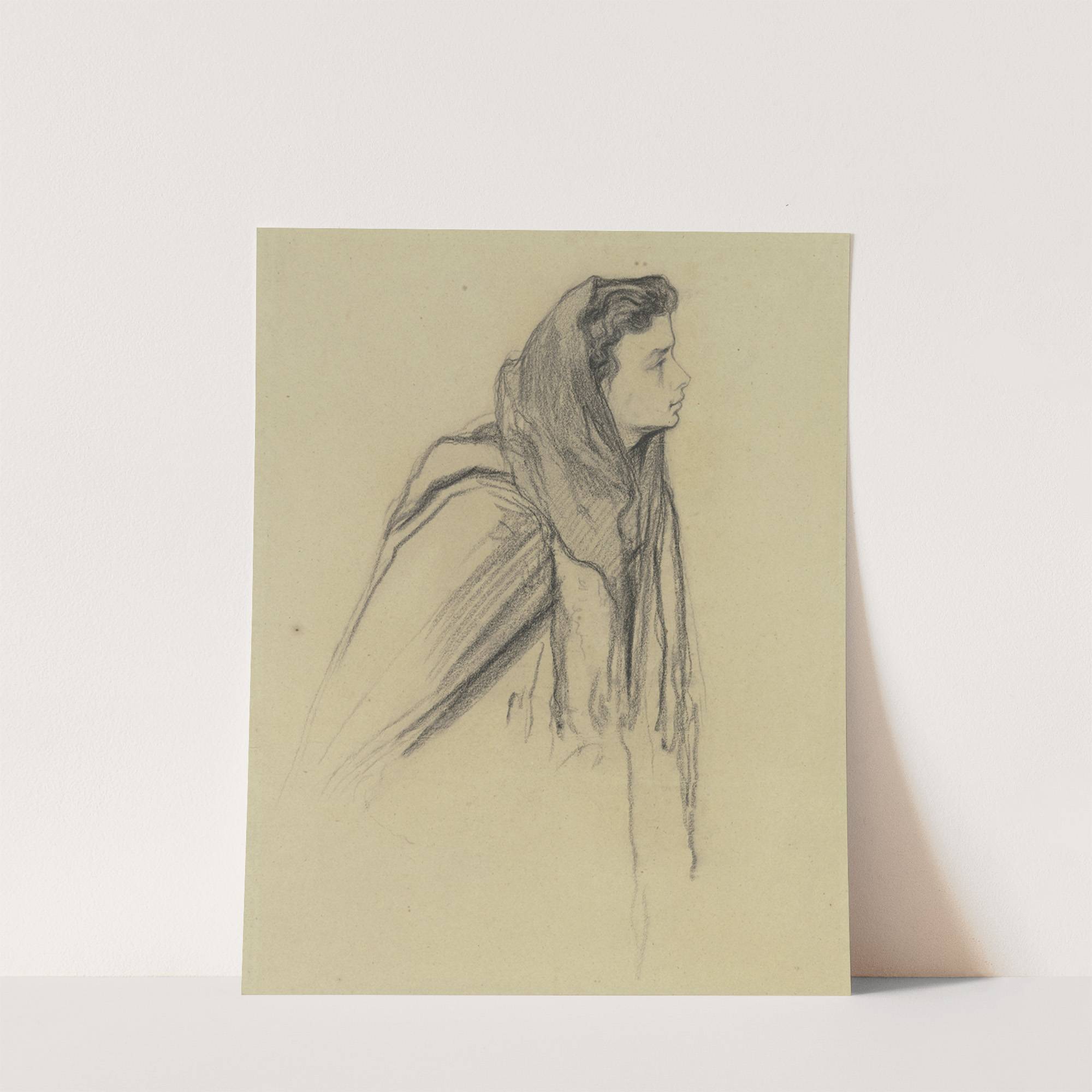Brustbild einer Frau mit Kopftuch nach rechts by Victor Müller - Wall Art Print