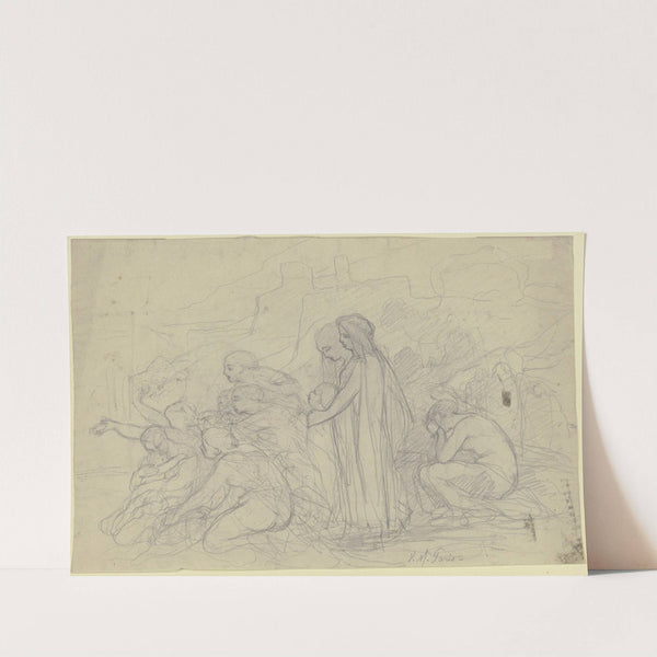 Gruppe trauernder Menschen nach links by Victor Müller - Wall Art Print