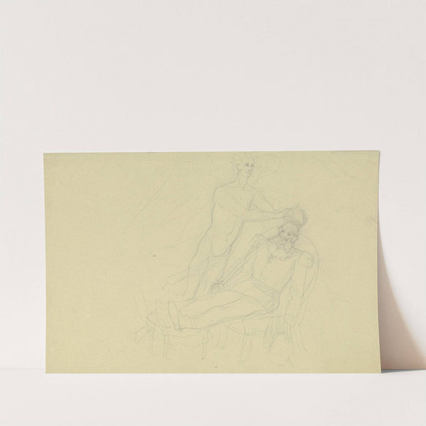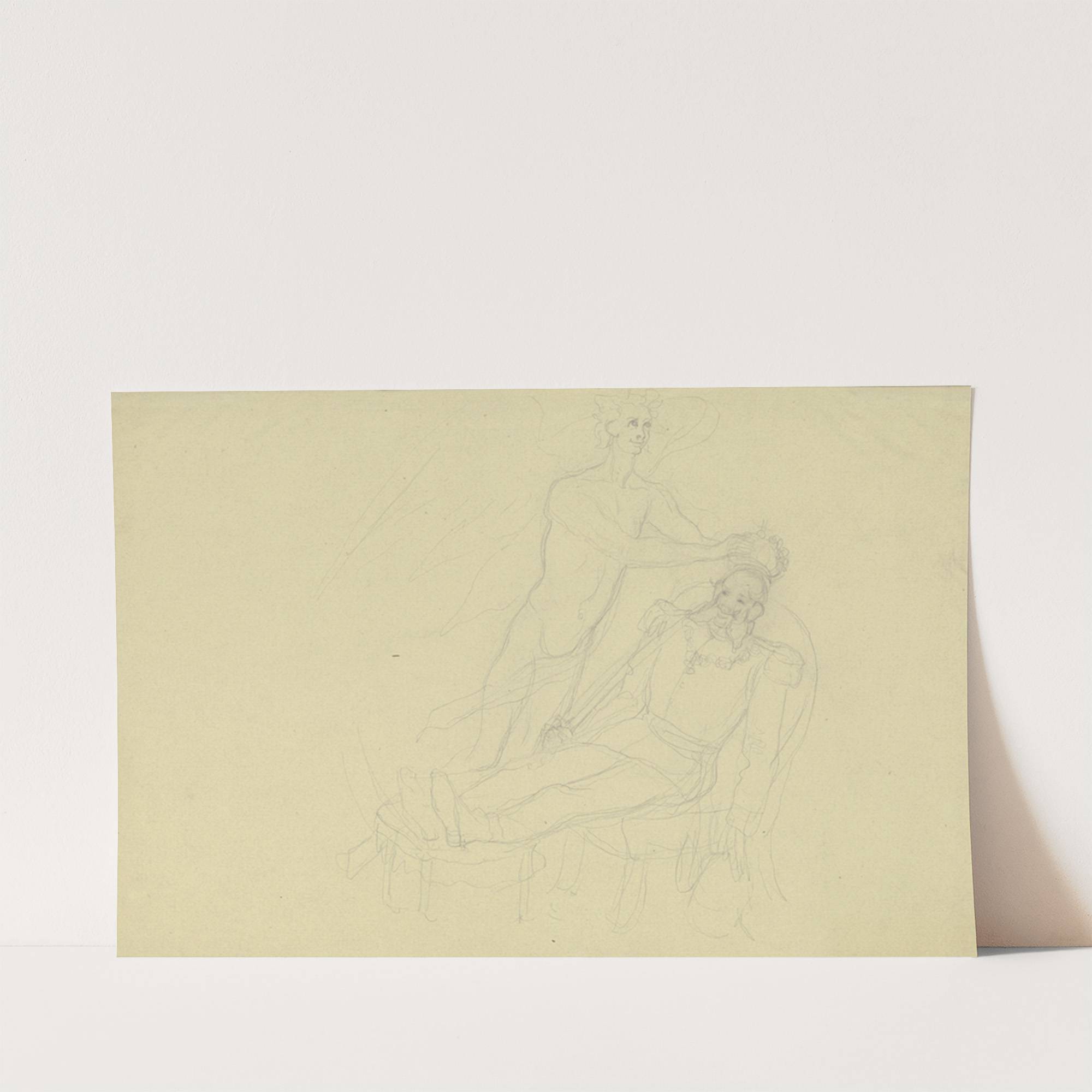 Kaiser Wilhelm I. im Lehnstuhl mit Fußbank, von einem Genius gekrönt by Victor Müller - Wall Art Print