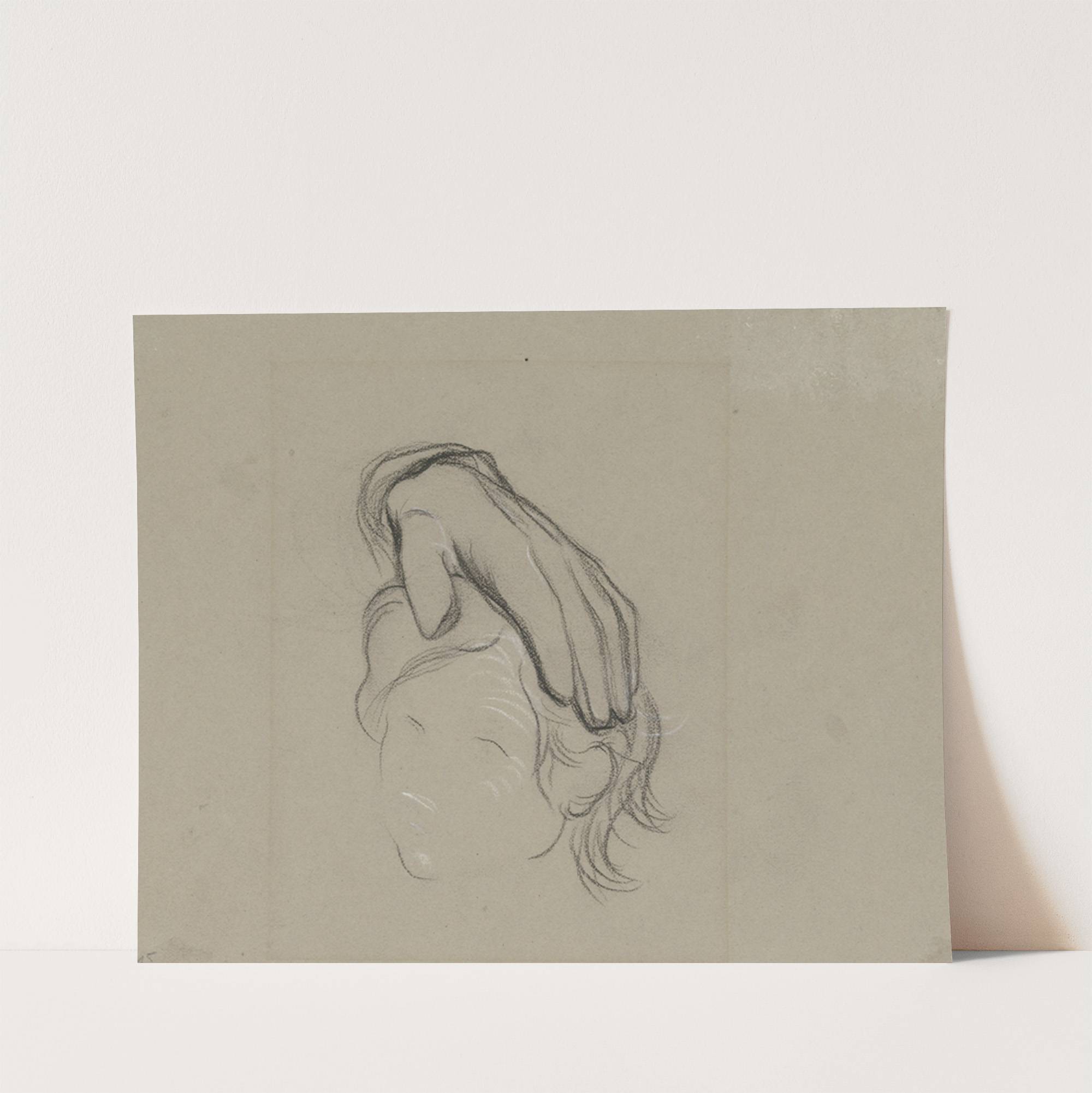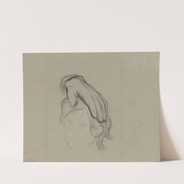 Kopf des Kindes und die darauf liegende Hand Hartmuts aus ‘Ritter Hartmut von Kronberg nimmt von seinen Angehörigen Abschied by Victor Müller - Wall Art Print