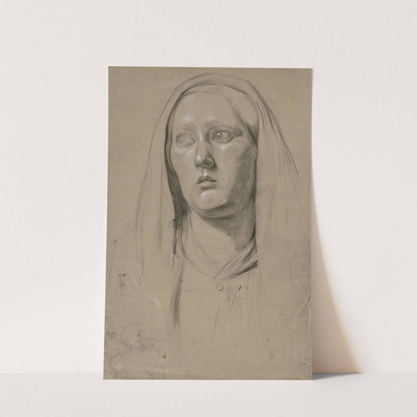 Kopf einer Frau in Vorderansicht, den bangen Blick nach links gerichtet by Victor Müller - Wall Art Print