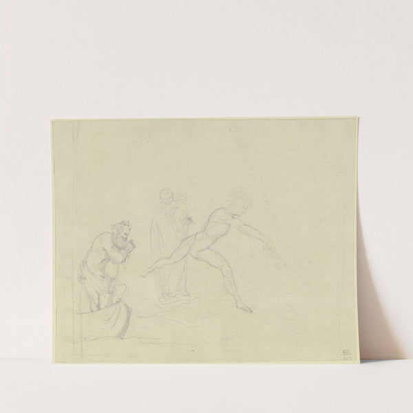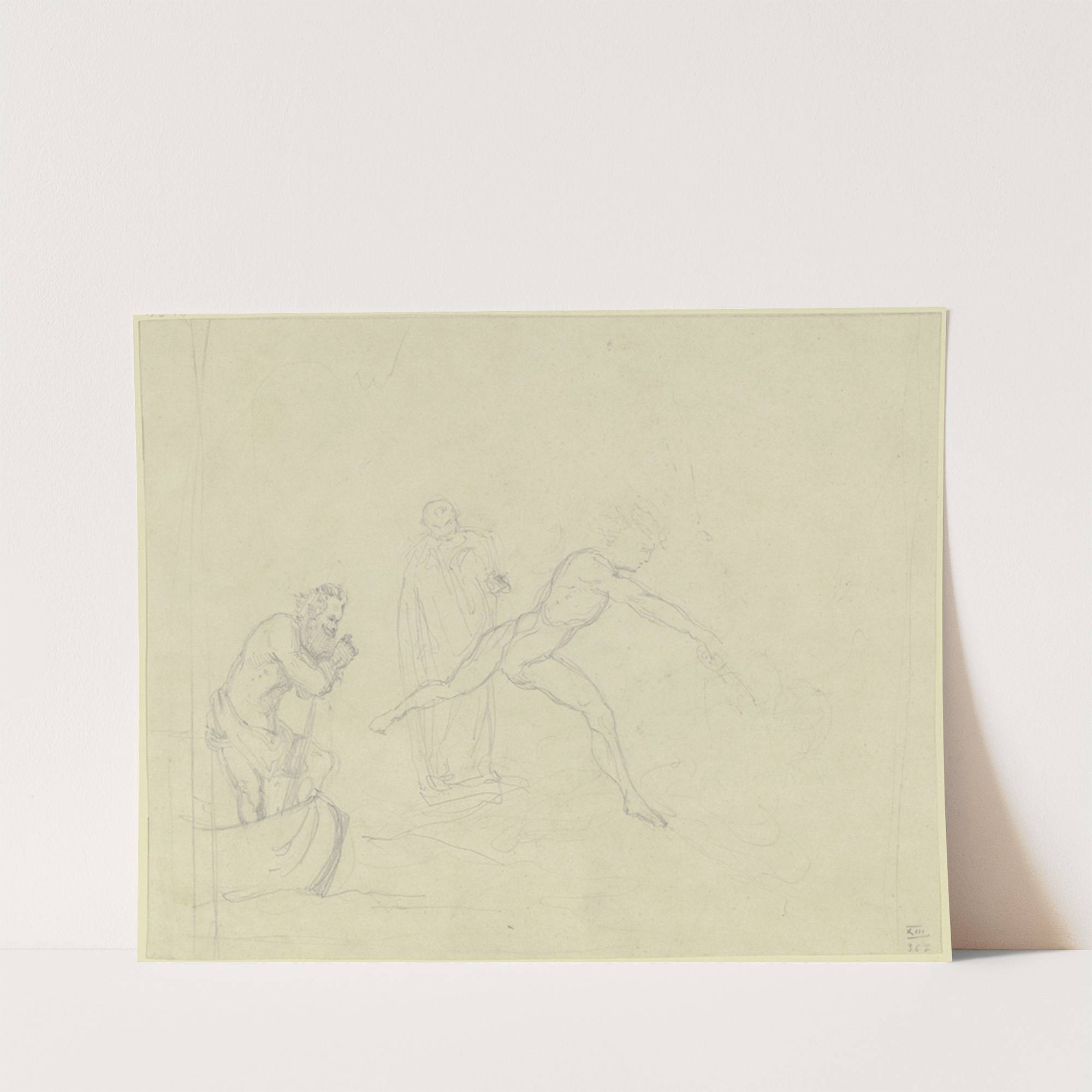 Laufender Mann, links ein Mann in einem Boot stehend, im Hintergrund stehend ein dritter Mann by Victor Müller - Wall Art Print