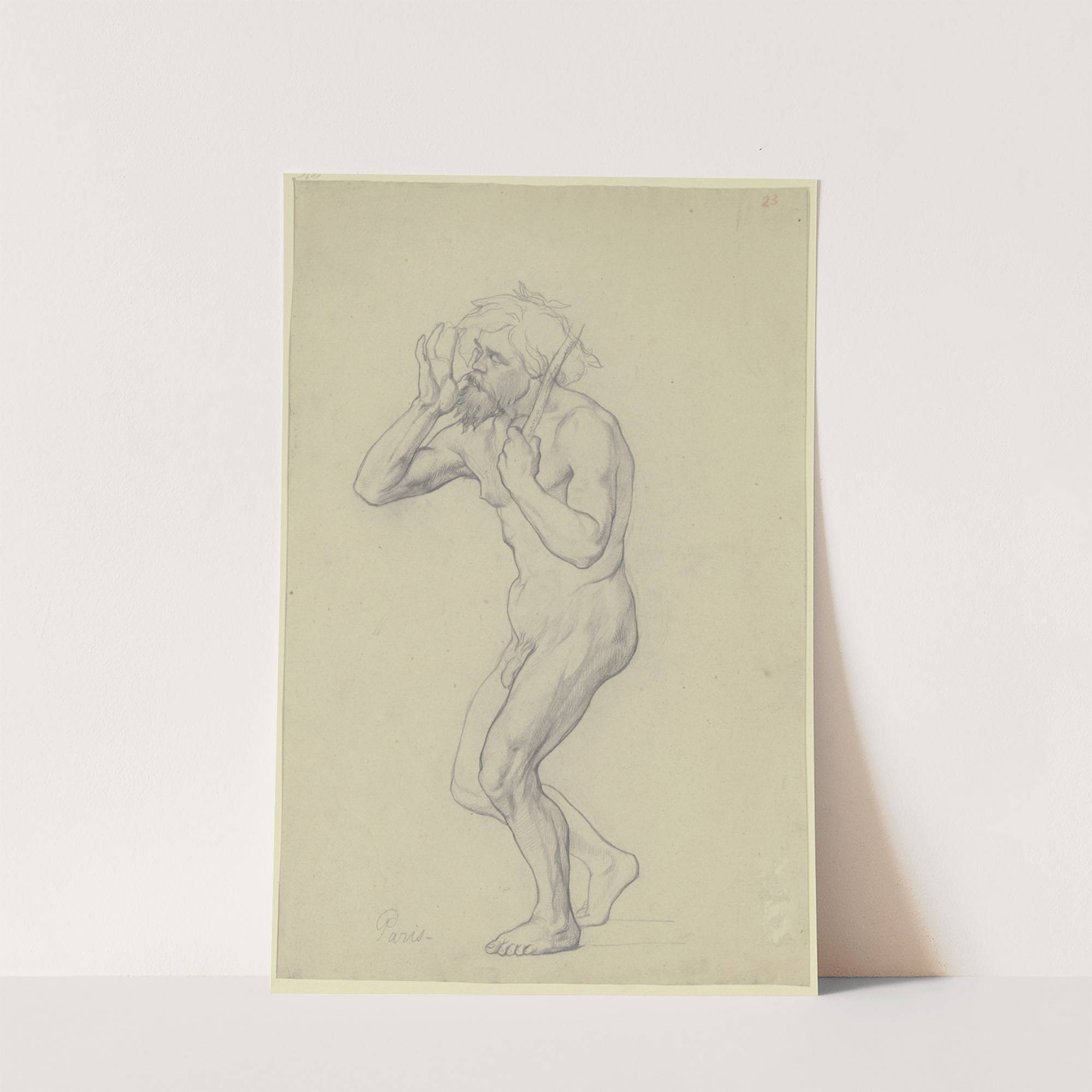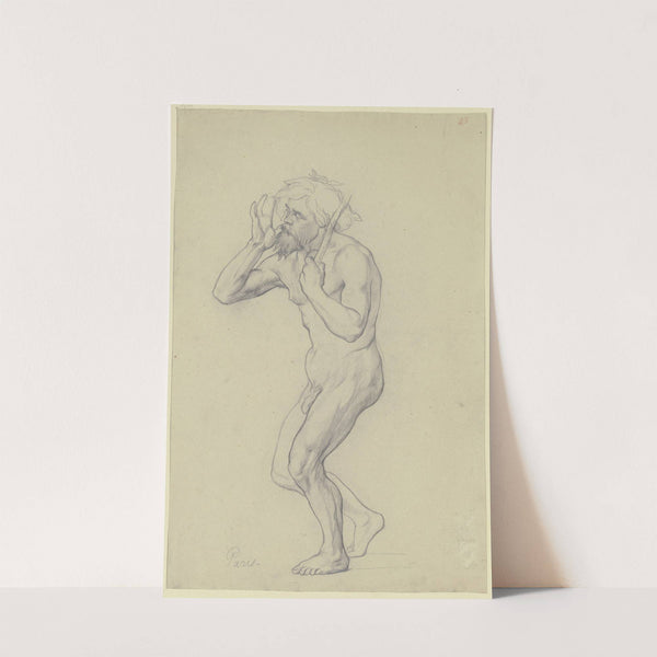 Schreitender männlicher Akt nach links, in der Linken einen Stock hochhaltend by Victor Müller - Wall Art Print