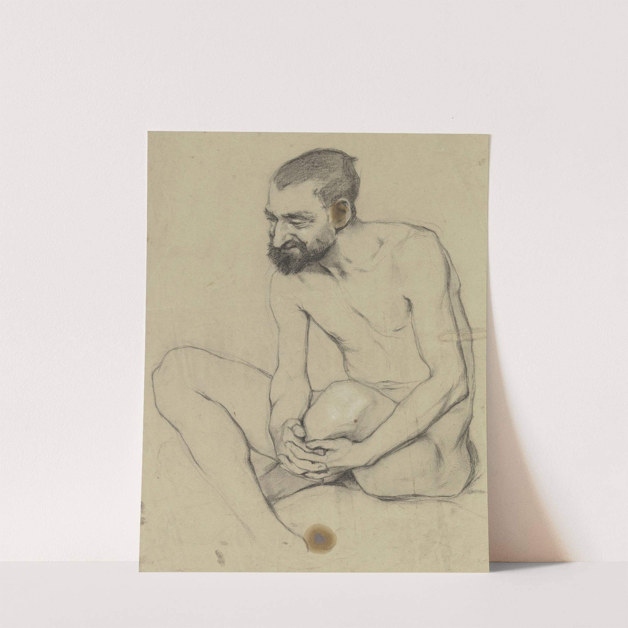 Sitzender männlicher Akt mit gekreuzten Beinen, die Hände um das linke Knie gefaltet by Victor Müller - Wall Art Print