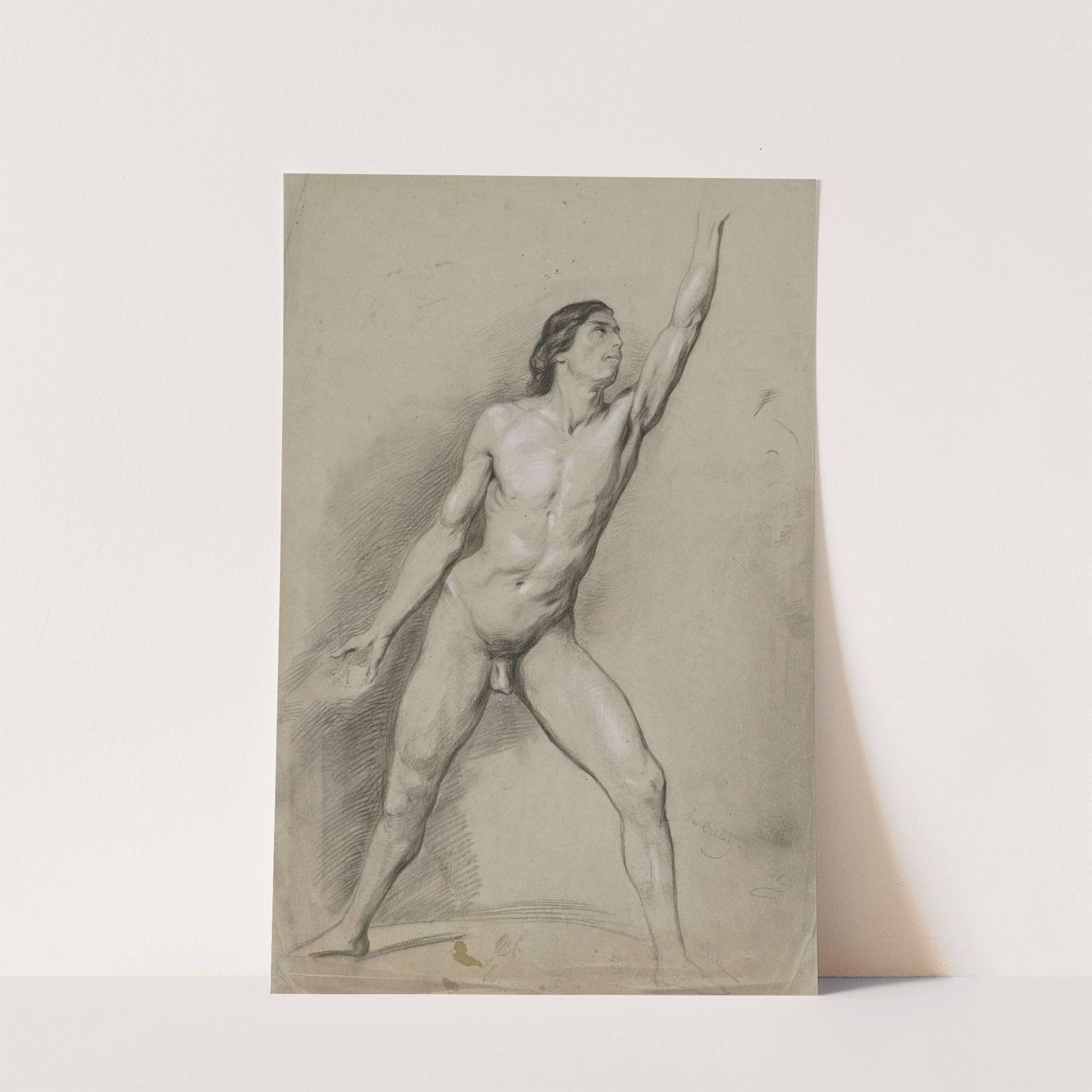 Stehender männlicher Akt, mit erhobener Linker im Ausfallschritt nach rechts by Victor Müller - Wall Art Print