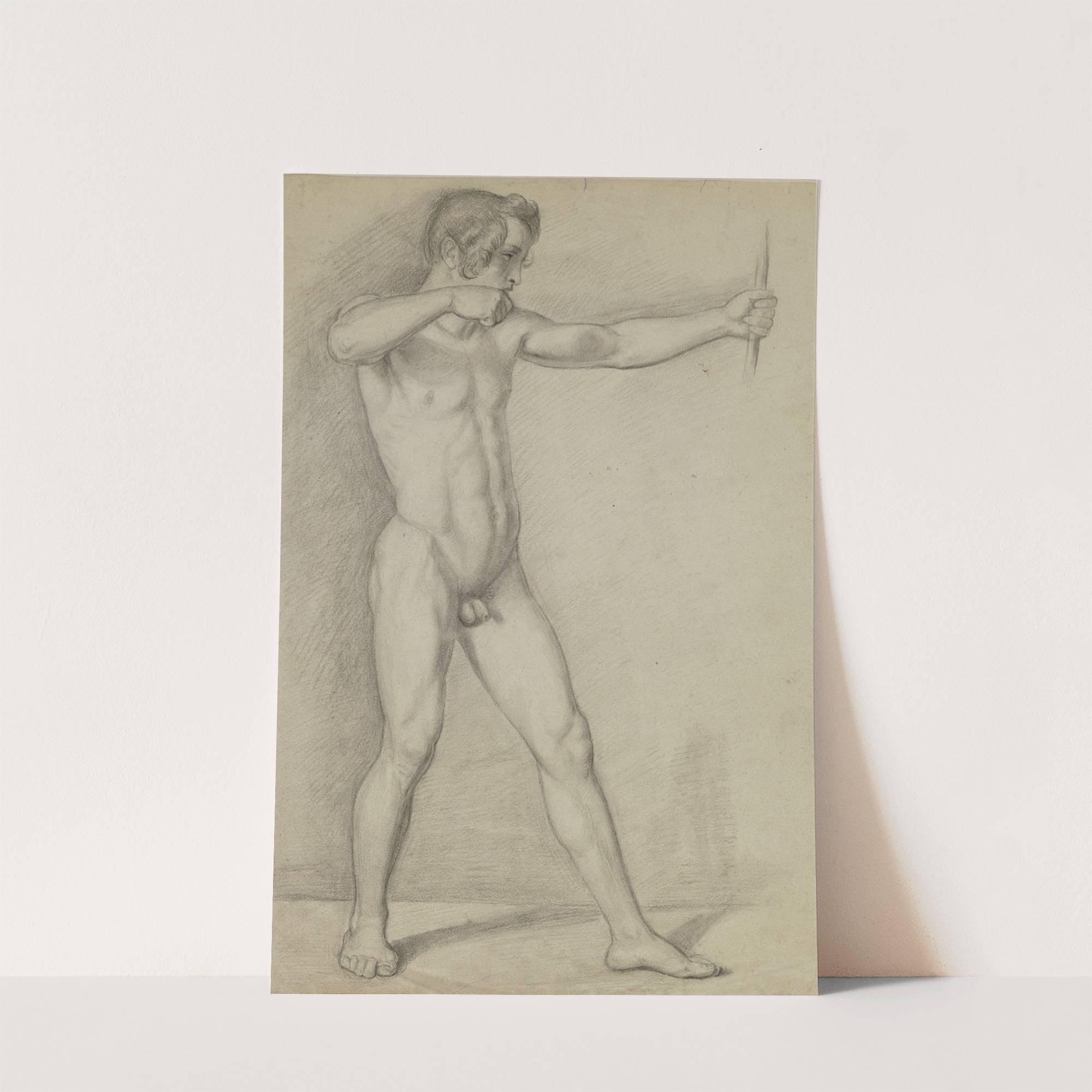 Stehender männlicher Akt nach rechts, einen imaginären Bogen spannend by Victor Müller - Wall Art Print