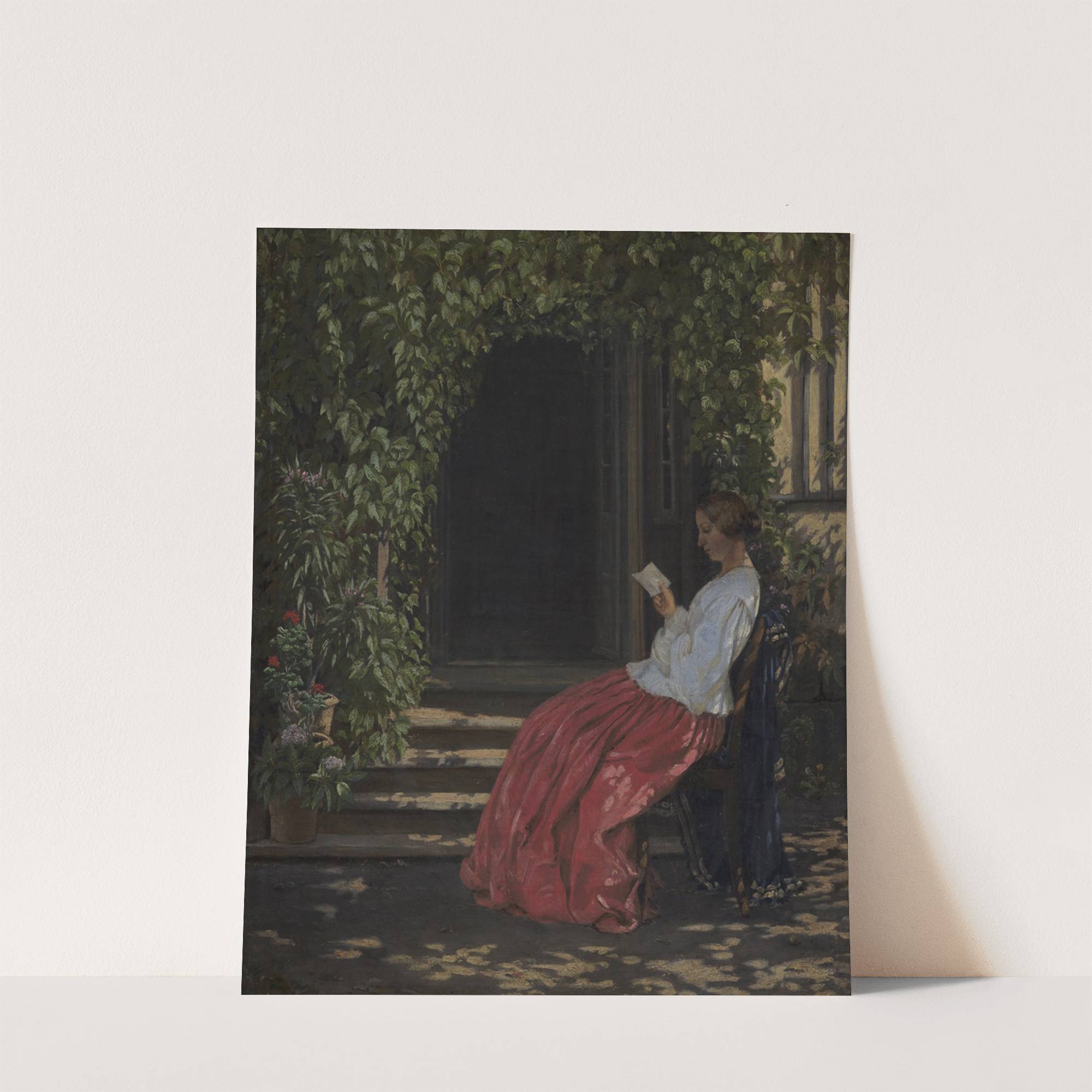 Læsende dame uden for en havedør by Vilhelm Kyhn - Wall Art Print