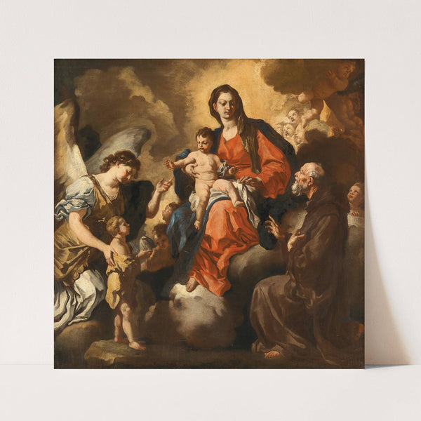 Madonna and Child, with Saint Francis of Paola and the Archangel Raphael by Neapolitan School - Wall Art Print