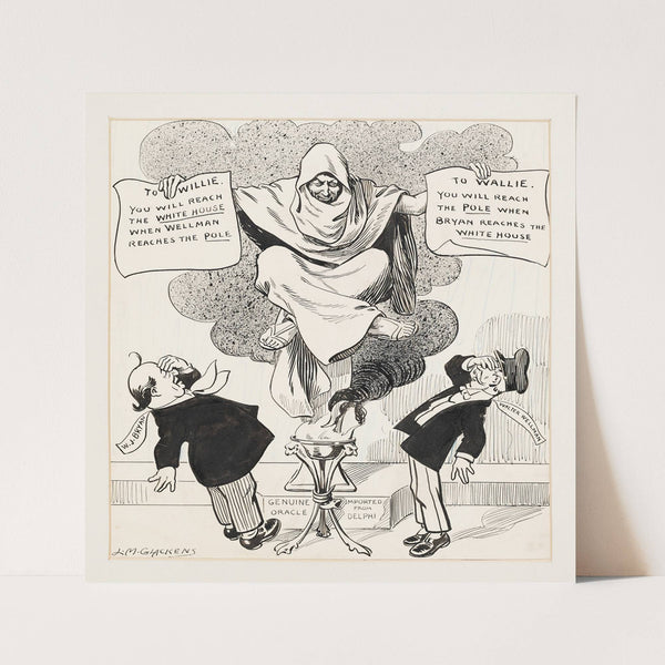 Oracle (‘Genuine oracle imported from Delphi’) seated cross-legged in cloud of smoke (1909) by Louis Glackens - Wall Art Print